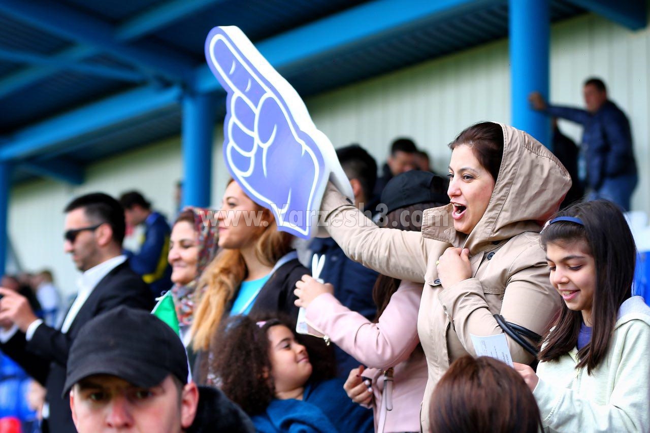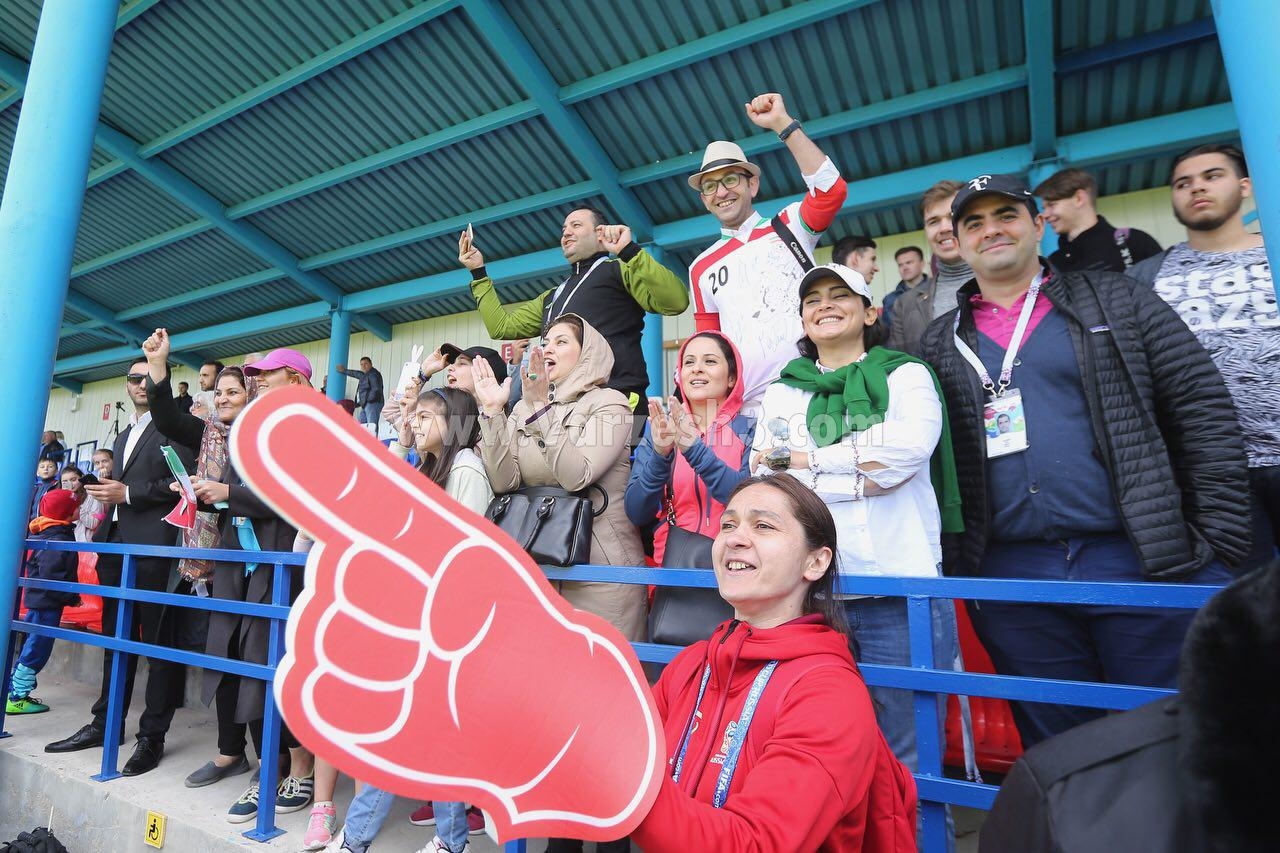 دستکشهای بزرگ قرمز و آبی رنگی که تا قبل از ورود تماشاگران در اختیار راهنمایان محل تمرین ایران جام جهانی قرار داشت، شکل جالبی به سکوهای ورزشگاه استوگینو دادند. هواداران با فریادهای بلند کیروش و شاگرداناش را تشویق میکردند.
