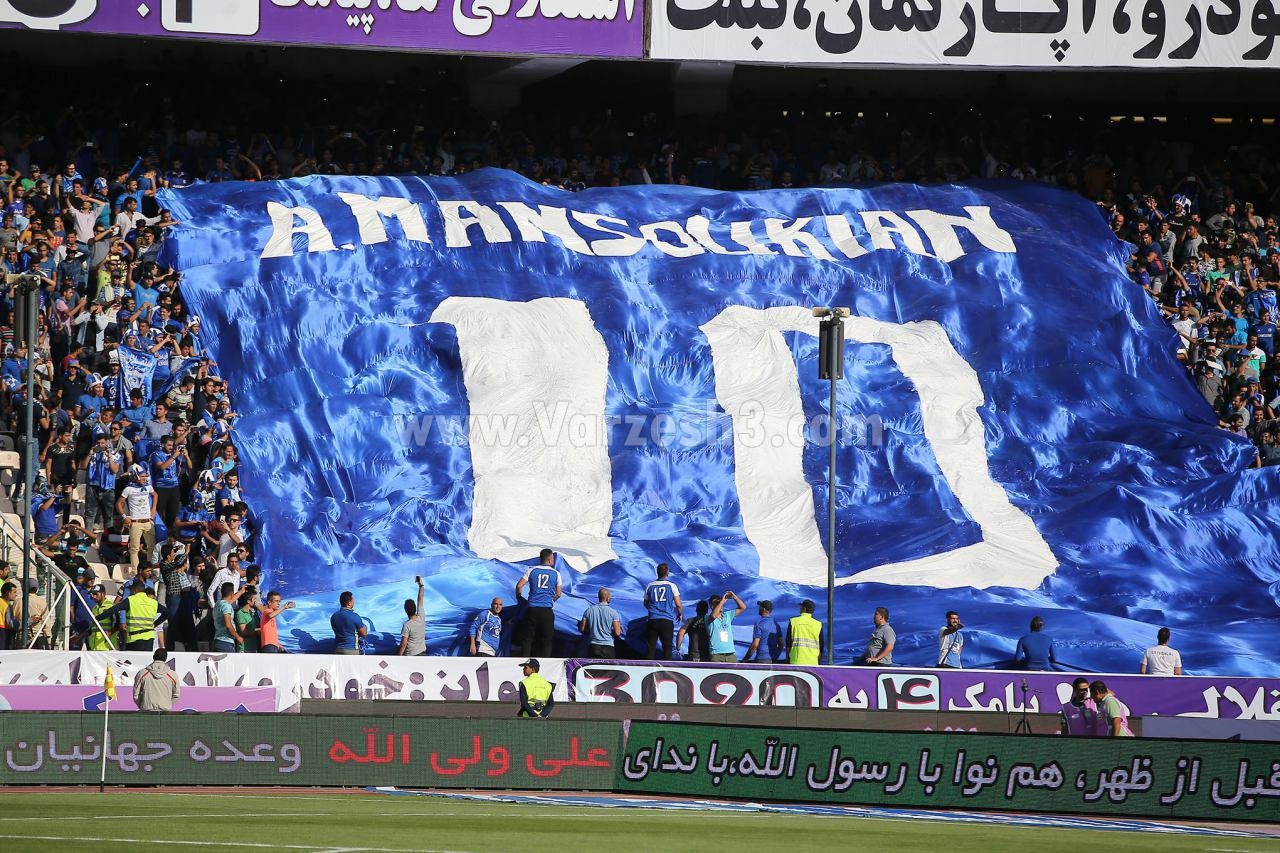 هواداران استقلال نیز به دلیل حمایت از سرمربی خود، پرچمی بزرگ مزین به نام و شماره علیرضا منصوریان به ورزشگاه آزادی آورده بودند و پیش از آغازبازی آن را باز کردند و در حین دیدار نیز هر از گاهی با بالا بردن آن، حمایت خود را به سرمربی تیم شان نشان می دادند.