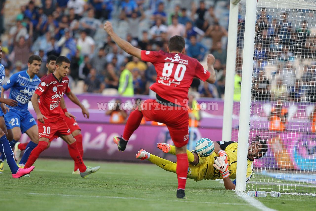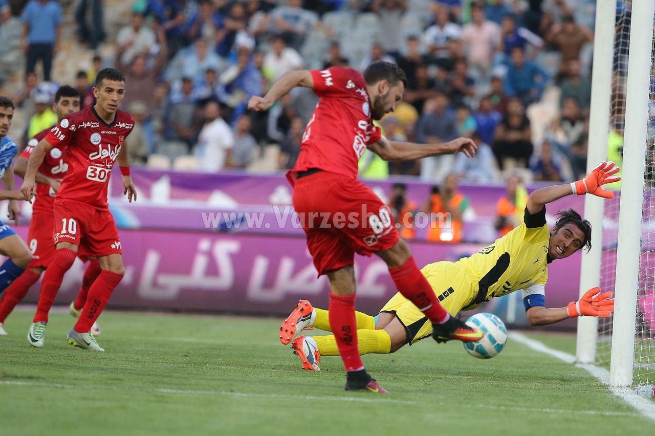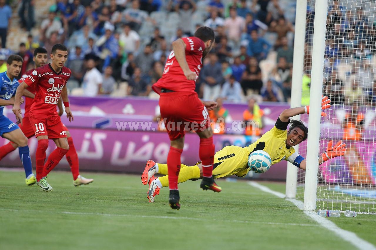روی صحنه گل تلاش مهدی رحمتی برای دفع توپ جالب توجه است.