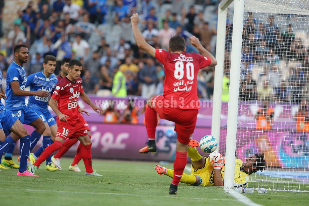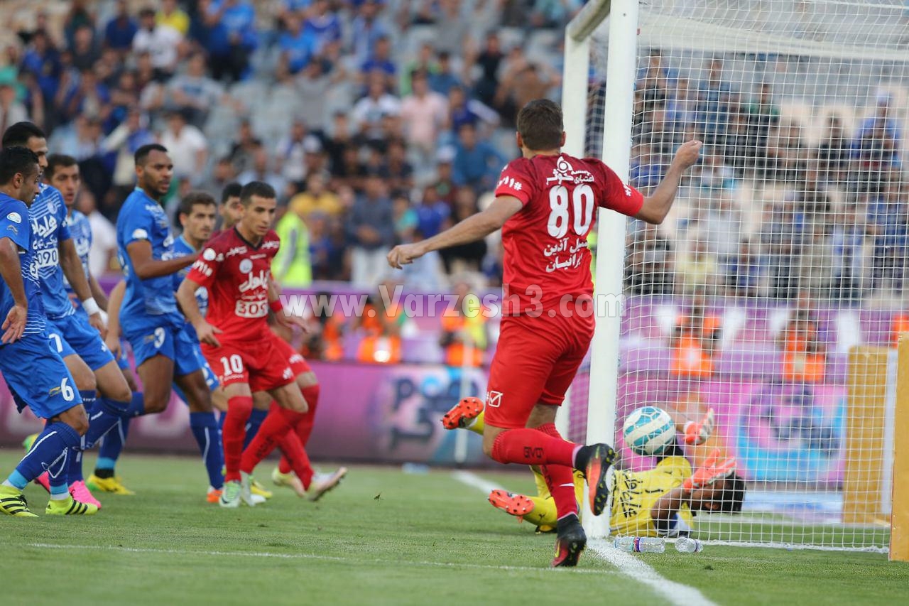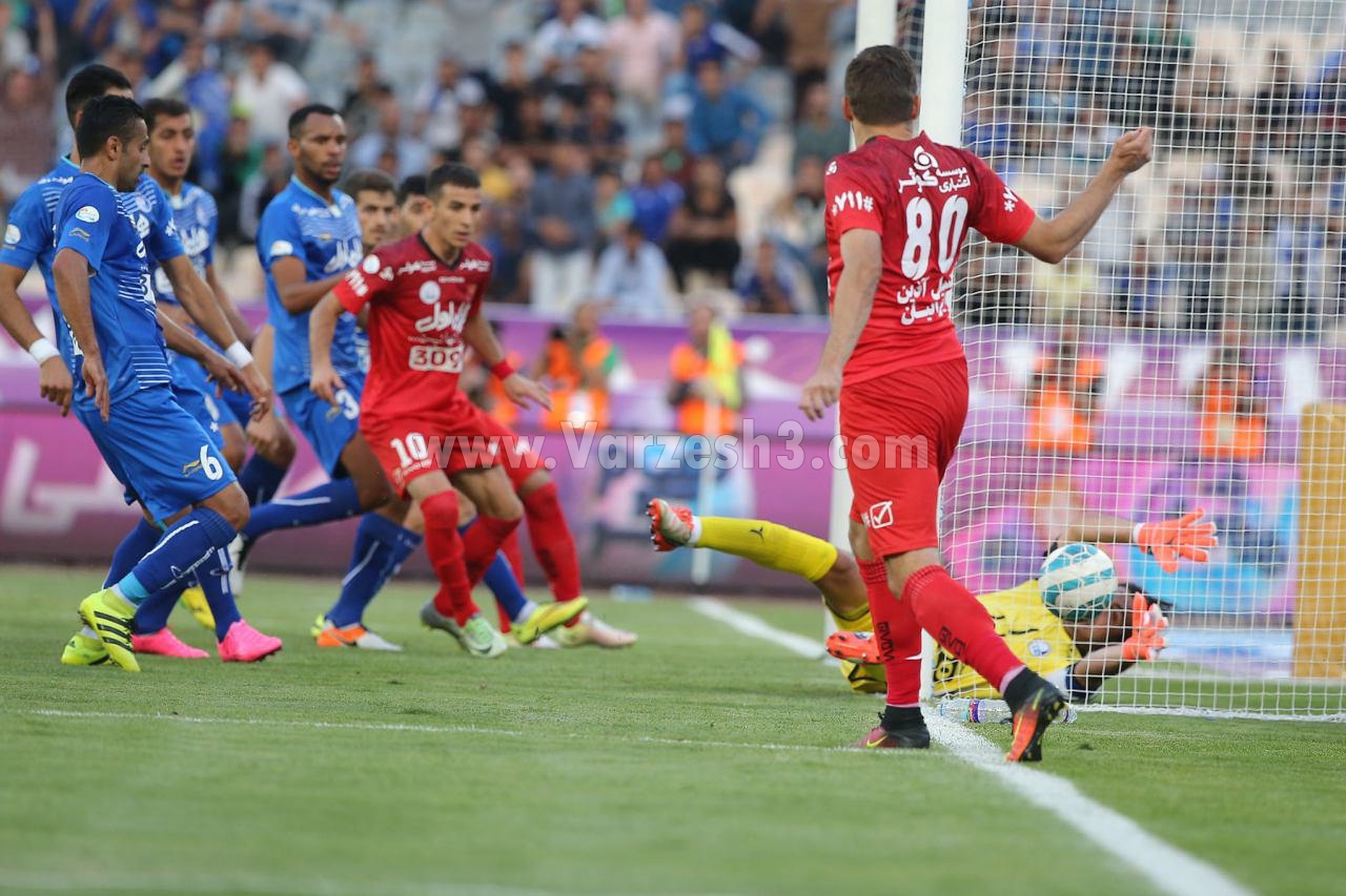 روی صحنه گل تلاش مهدی رحمتی برای دفع توپ جالب توجه است.