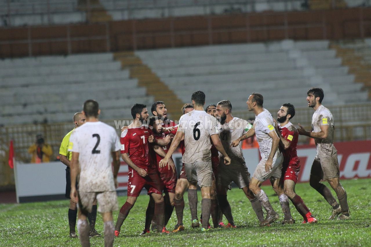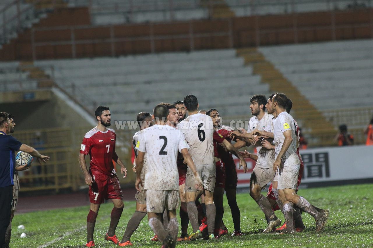 در نهایت با ورود تیم داوری و کادرفنی دو تیم به این درگیری و کارت زرد داور به علا الشبلی مدافع سوریه این جنجال به پایان رسید.