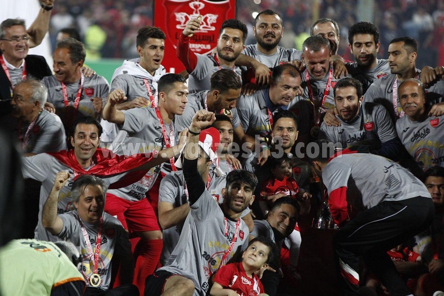 * با بالا بردن جام توسط سیدجلال حسینی بازیکنان تک تک جام را بالای سر میبرند و در نهایت علیرضا بیرانوند جام را به سمت جایگاه دوم و محل عکس تیمی برد تا اندکی از نظم مراسم کاسته شود.