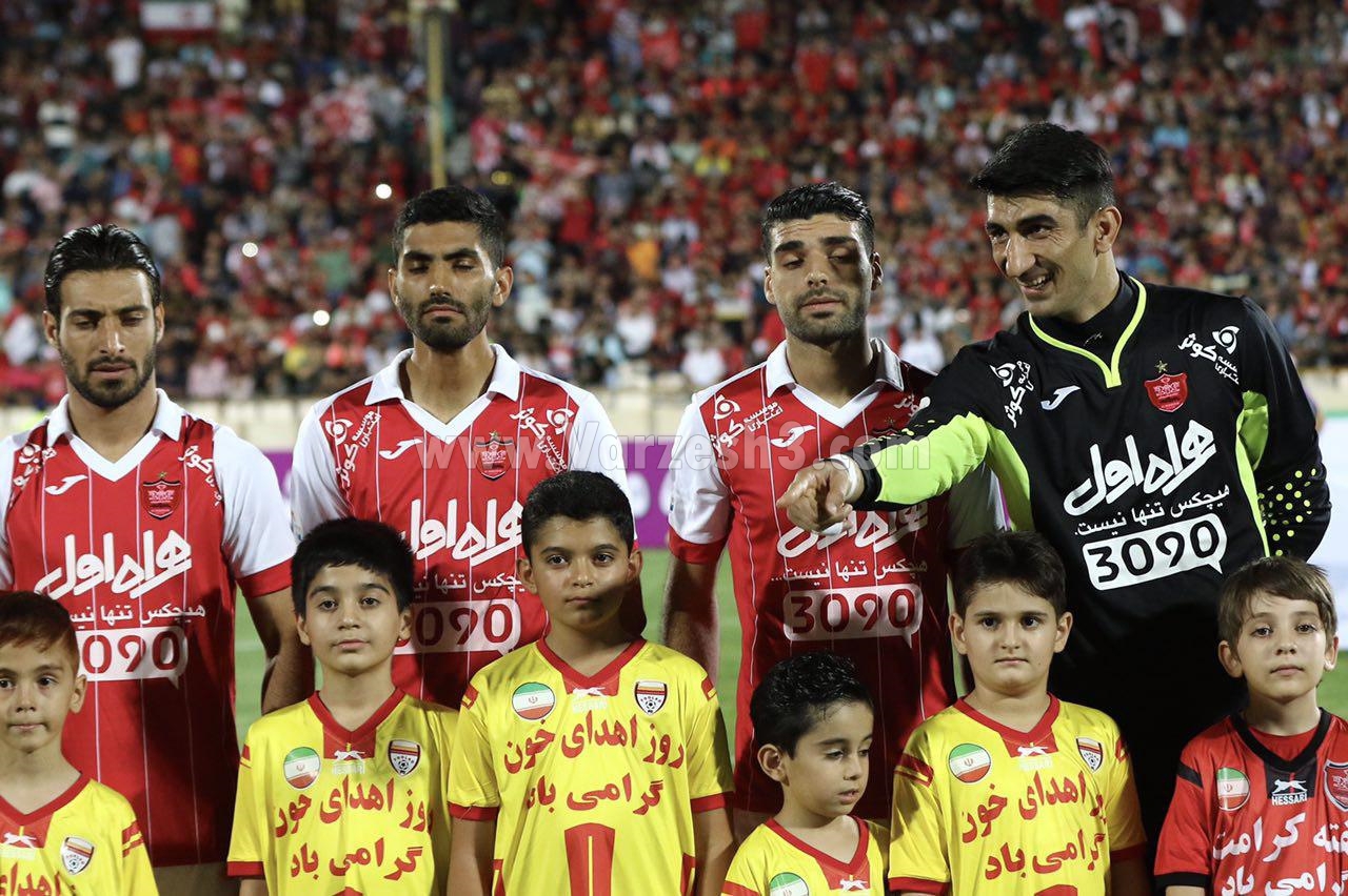 دروازه بانان دو تیم پرسپولیس و فولاد در ابتدای دیدار سوژه عکاسان و هم تیمی هایشان بودند.