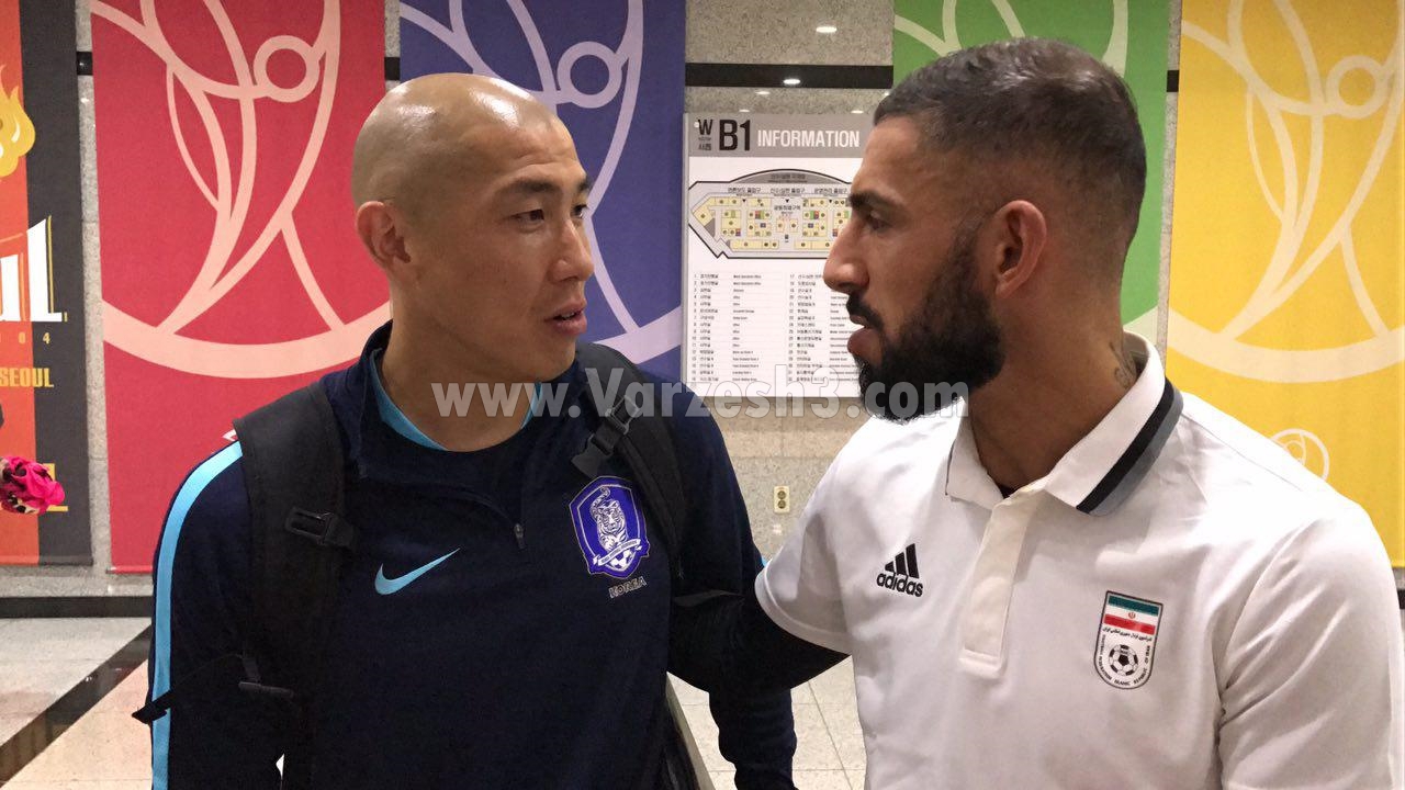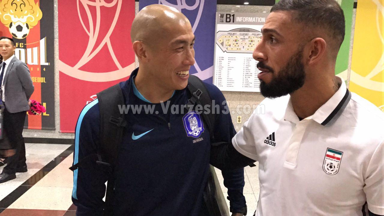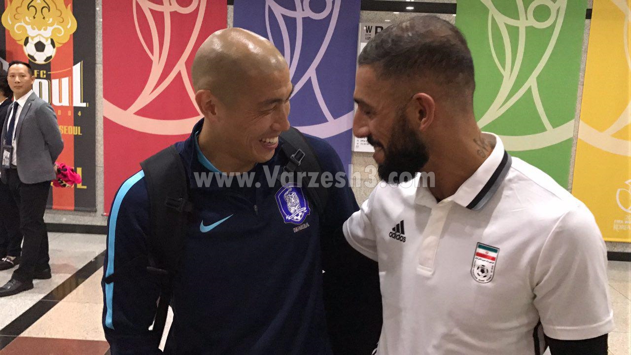 به گزارش "ورزش سه"، پس از پایان بازی و در حالی که تیم های ملی ایران و کره با تساوی بدون گل دیدارشان به پایان رسیده بود، اشکان دژاگه کاپیتان تیم ملی ایران برخورد گرمی با چا دو ری بازیکن سابق تیم ملی کره و مربی کنونی تیم ملی کشورش داشت.
