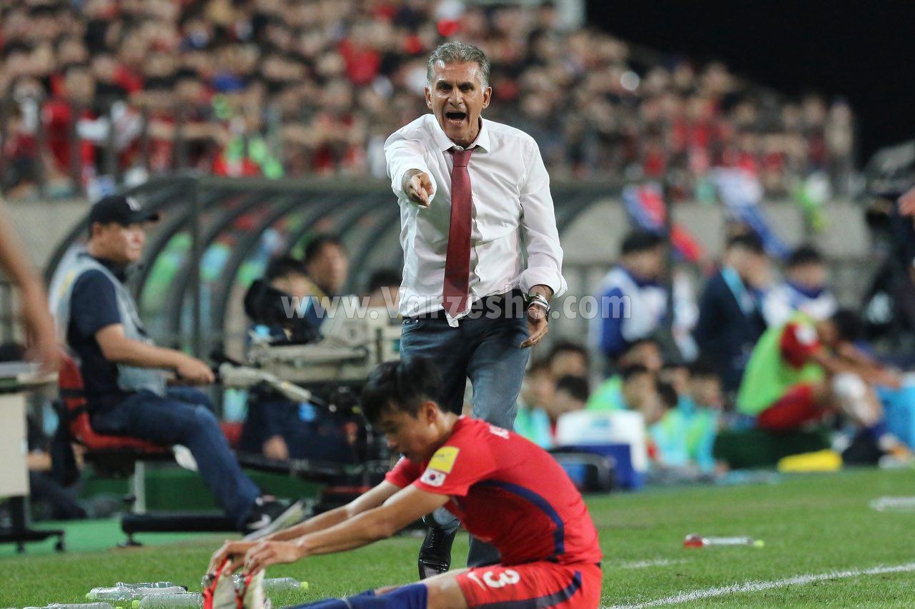 در دیدار روز گذشته اما ملی پوشان ایران باید در ابتدا از باز شدن دروازه خود جلوگیری کرده؛ سپس به گلزنی فکر می کردند، به همین دلیل یکی از مهمترین واکنش های کی روش به تذکرات وی به بازیکنان در حالت دفاعی مربوط می شد و او بارها با توصیه های خود سعی در بسته نگه داشتن دروازه کشورمان داشت، به مانند همین صحنه ای که در تصویر پیداست، خطای محمد انصاری یک ضربه ایستگاهی روی خط محوطه جریمه برای کره ای ها در پی داشت و در این لحظات کی روش تعداد بازیکنان دیوار دفاعی و نوع چینش آنها را با فریاد تذکر می داد و پس از آنکه بازیکنان آن طور که وی می خواست نایستادند شکایت آنها را نزد اوسیانو کروز برد.