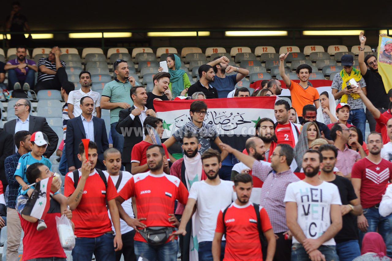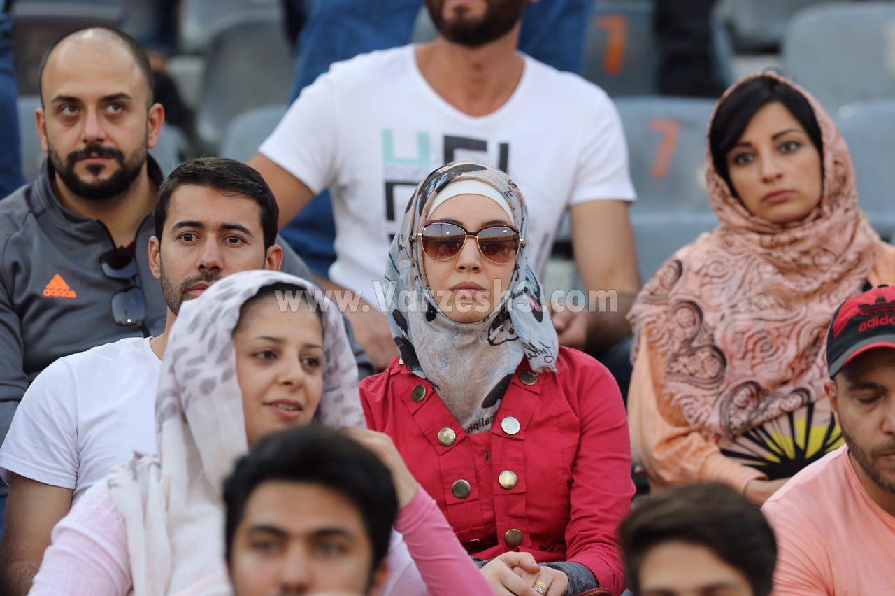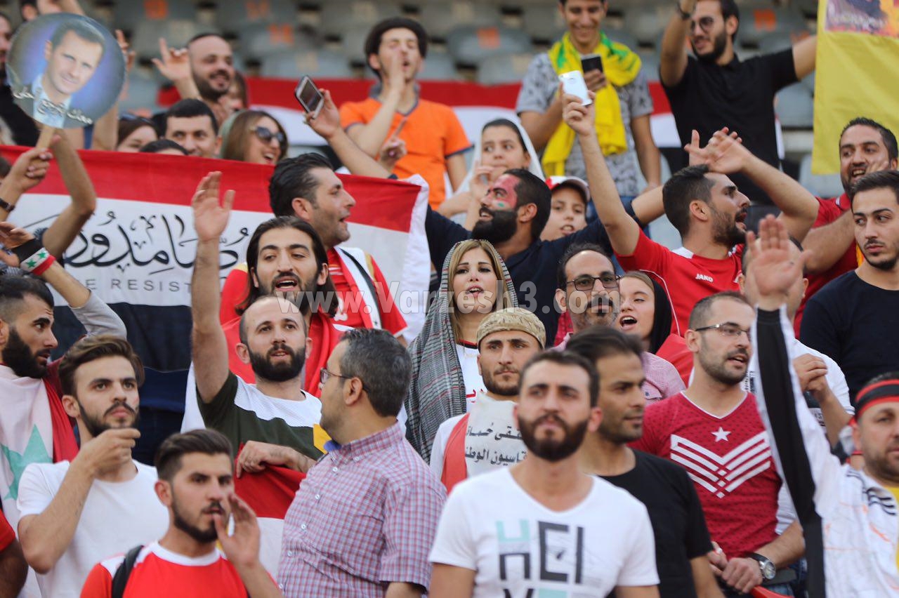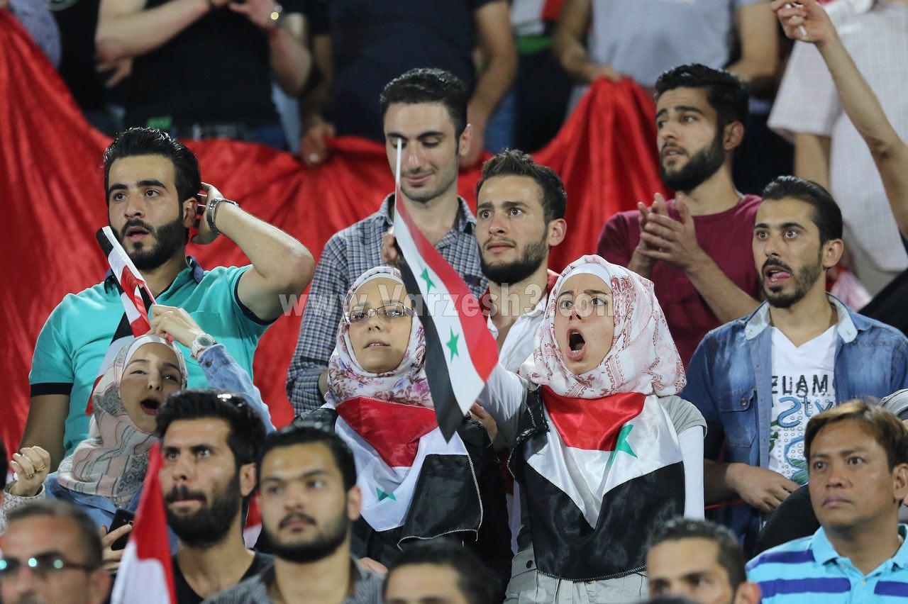 بانوان سوری با حجاب کامل و به همراه خانواده خود در جایگاهی که برای تیم سوریه در نظر گرفته شده بود حاضر شدند و حضورشان از همان ابتدا توجه عکاسان ایرانی و بین المللی را به خود جلب کرد. نکته این حضور موضوع داغ شده بلیت فروشی بانوان ایرانی در روزهای آغاز بلیت فروشی ایران - سوریه بود که پارادکس جالبی را ایجاد کرده است.