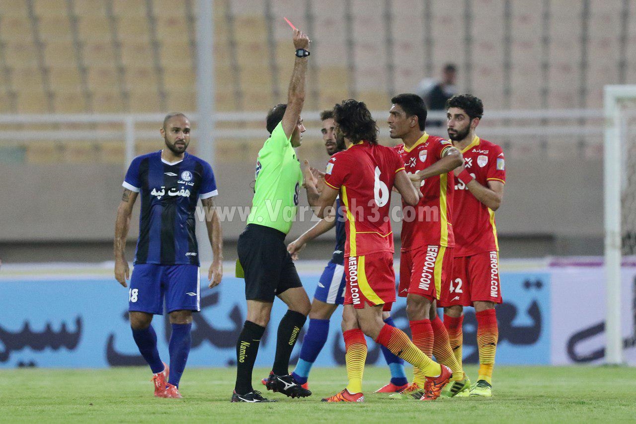 به گزارش"ورزش سه"، عبدالله کرمی در دقیقه 30 بازی و به دلیل بحث با رضا کرملاچعب کارت زرد اول را دریافت کرد و 11 دقیقه بعد نیز کارت زرد دوم را با یک خطای کاملا مشکوک از سوی داور گرفت.