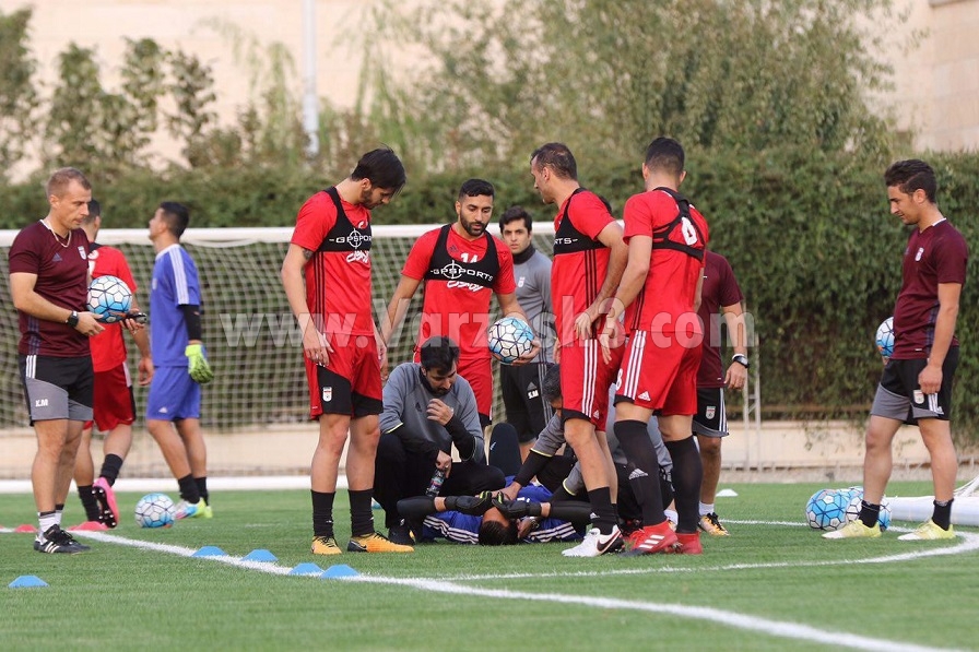 گلر اصلی تیم ملی در جام ملت های آسیا 2015 در تمرین امروز و در اثر برخوردی که با بازیکنان داشت، دچار مصدومیتی جزئی شد، که وقفهای چند دقیقه ای را در تمرین به همراه داشت و پزشکان تیم ملی برای بررسی شرایط او بالای سرش حاضر شدند.
