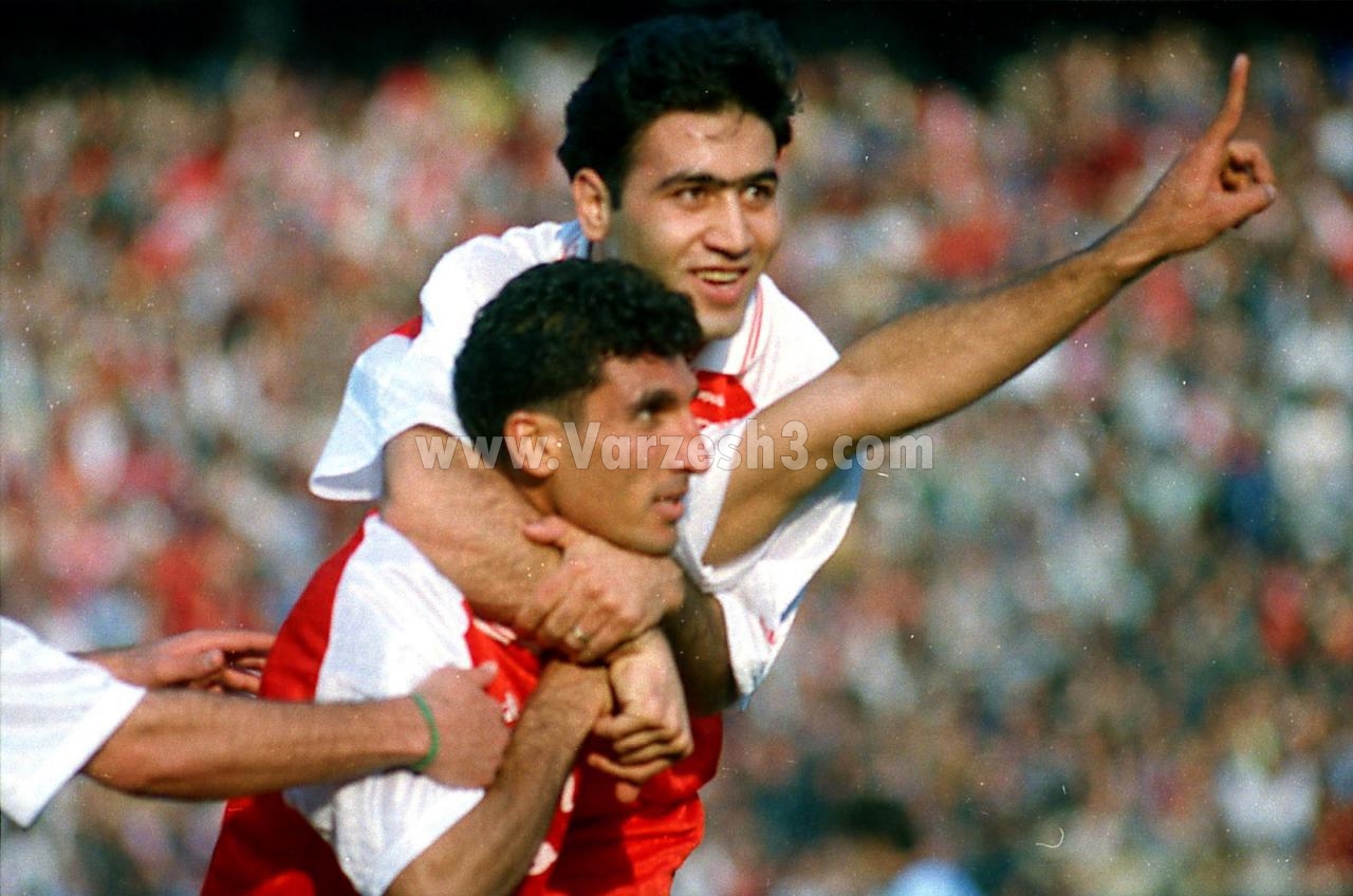 * فرهاد مجیدی و پرویز مظلومی خالقین عدد 4 برای استقلال هستند. این تصویر شادی مشترک این دو چهره دربی باز را نشان می دهد که در بزرگترین قطع ممکن روی جلد خبرورزشی منتشر شد. فرهاد مجیدی به خاطر چهره جذابش همیشه سوژه خوبی برای عکاس ها محسوب می شد چه در جوانی و چه در دوران رو به اتمام فوتبالش که البته در دربی ها می درخشید.