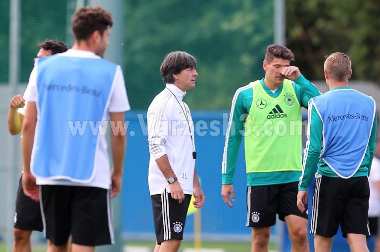 سرمربی خشک و خشن آلمانها که در طول تمام دقایق تمرین بدون توجه به سر و صدای نزدیک ۵۰۰ هوادار حاضر در محل کمپ تنها روی عملکرد شاگردانش و اجرای دقیق خواستههایش تمرکز داشت.