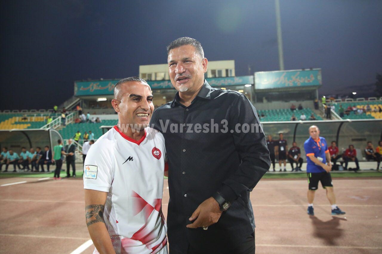 دایی و کعبی در ابتدای بازی امروز برخورد خیلی گرمی باهم داشتند و باهم شوخی می کردند. البته زمانی که دایی در تیم ملی با کعبی همبازی بود، او کاپیتان تیم ملی و بهترین گلزن فوتبال ایران بود اما کعبی دفاع راست جوان تیم ملی بود. با این وجود تصاویری که از دایی و کعبی قبل از بازی امروز دیده شد یادآور روزهای خوب فوتبال ایران در دورانی است که تیم ملی ستاره های بزرگ و مطرحی را داشت.