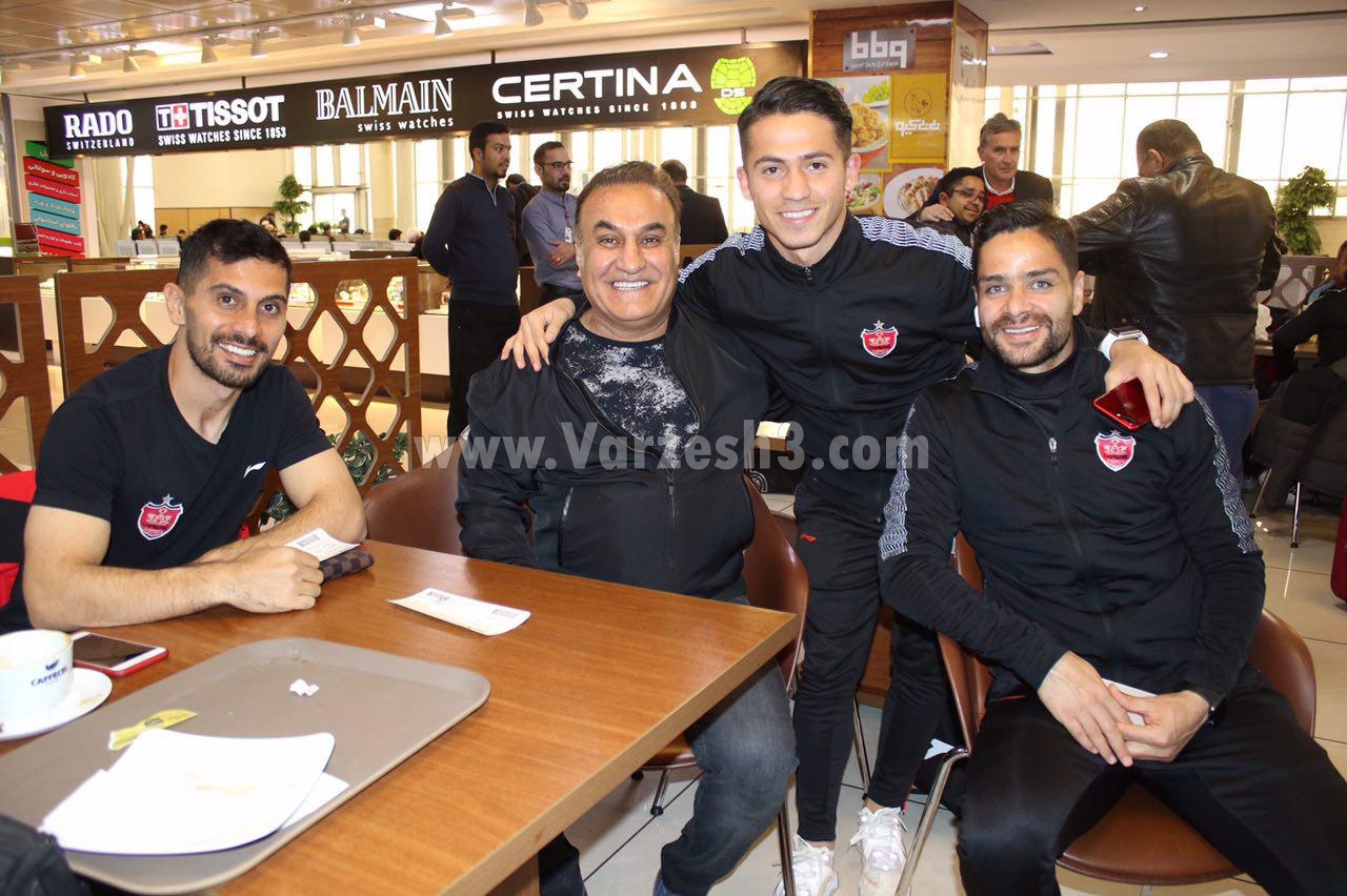 شاگردان برانکو ایوانکوویچ در زمان حضور در فرودگاه که با استقبال گرمی از سوی مسافران همراه بود، با فرهاد کاظمی سرمربی سابق سپاهان و سرمربی کنونی پرسپولیس پاکدشت برخورد کردند و به گرمی با او خوش و بش کردند.