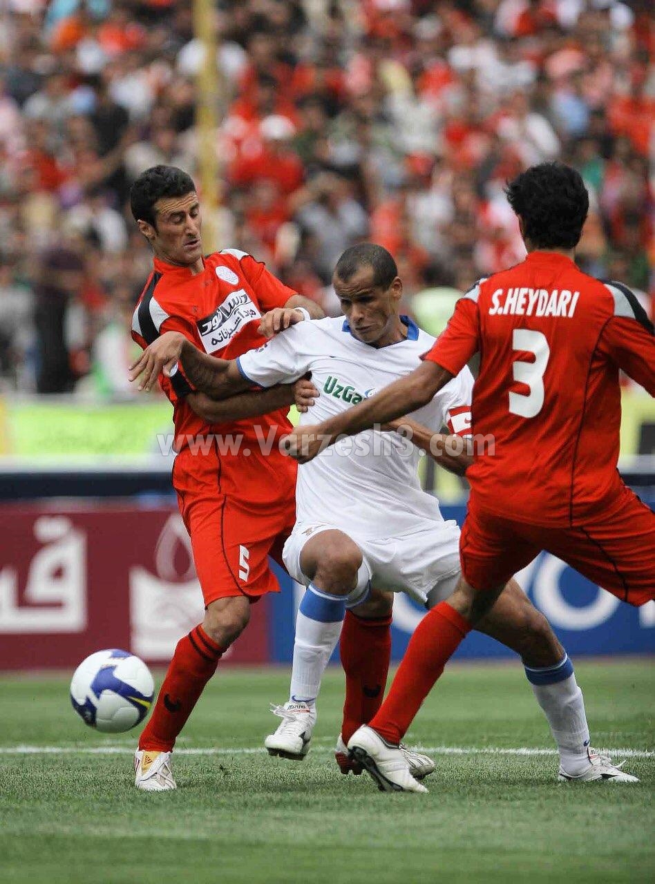 پرسپولیسی ها نمایشی خوبی در مقابل طرفداران پرتعداد خود نداشتند و سرانجام در دقیقه 40 پاس یکی از بازیکنان بنیادکار و عبور ریوالدو از بین سپهر حیدری و نبی اله باقری ها (که امیرحسین خیرخواه عکاس ورزش سه نیز این تصویر را به شکلی دقیق ثبت کرده) باعث شد تا او سرنگون شود و کیم دونگ جین داور کره ای نقطه پنالتی را نشان داد تا ستاره برزیلی پشت ضربه بایستد. در مقابل او معمارزاده ای حضور داشت که در صورت مهار ضربه مهاجم سابق بارسلونا، به ستاره ای محبوب نزد طرفداران پرسپولیس تبدیل میشد. اما او ضربه را محکم به گوشه دروازه زد تا شیرجه گلر سرخ ها نیز تاثیری نداشته باشد. آن روزها احمدرضا عابدزاده گلر پنالتی گیر و سابق تیم ملی و پرسپولیس مربی دروازه بان های این تیم بود که بعد از ناکامی معمارزاده در سیو پنالتی، این چنین مغموم و ناراحت تماشای بازی را ادامه داد.