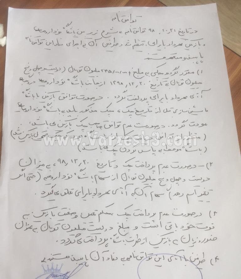 بایرامی چندی پیش در توافقی که با باشگاه نود ارومیه برای دریافت مطالبات خود داشت، چک 245 میلیون از آنها دریافت کرد و با امضای تفاهمنامهای بین طرفین قرار شد در صورتی که این چک پاس نشود، او به میزان طلبش سهام باشگاه را در اختیار بگیرد. اکنون با عدم وصول این چک و پاس نشدن آن، این تفاهمنامه اجرایی شده و در اتفاقی عجیب بازیکن لیگ برتری حال حاضر گل گهرسیرجان، صاحب بخشی از سهام تیم لیگ دسته اولی نود ارومیه شده است.