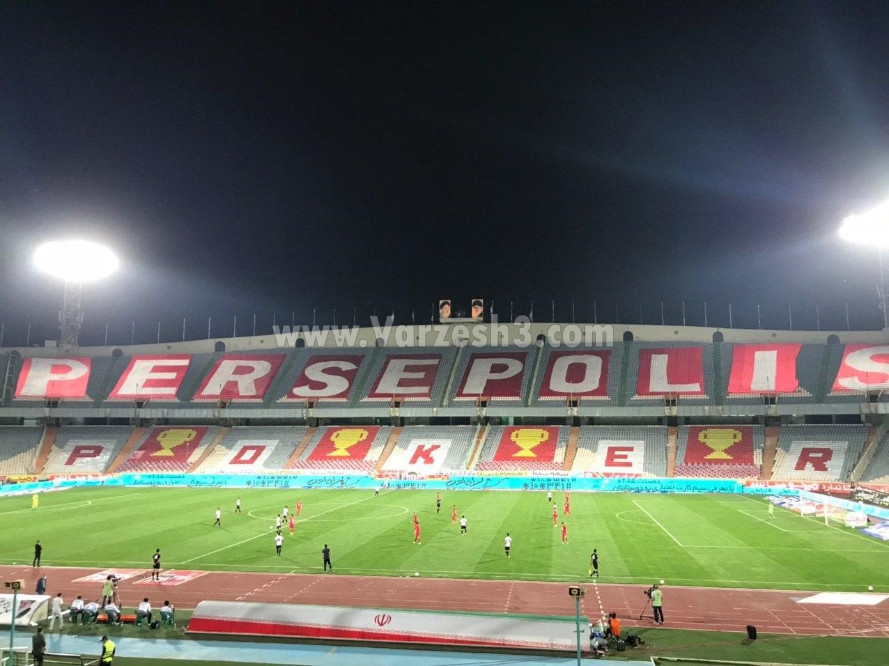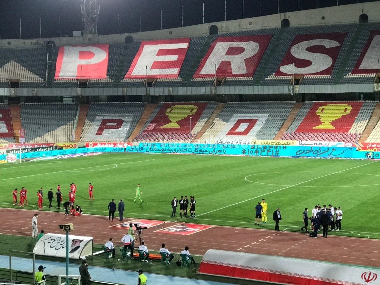 21:25 - در دقیقه 24 از طریق بلندگو شعار هواداران پرسپولیس برای پاسداشت یاد هادی نوروزی پخش شد.