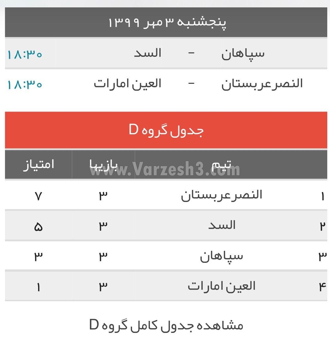 اگر در بازی برگشت السد و العین نماینده امارات برنده بازی لقب بگیرد، سپاهان حتی در صورت باخت هم همچنان شانس صعود دارد ولی اگر شاگردان ژاوی برنده بازی باشند، طلایی پوشان راهی جز کسب سه امتیاز مقابل السد برای در دست گرفتن سرنوشت خودشان ندارند.