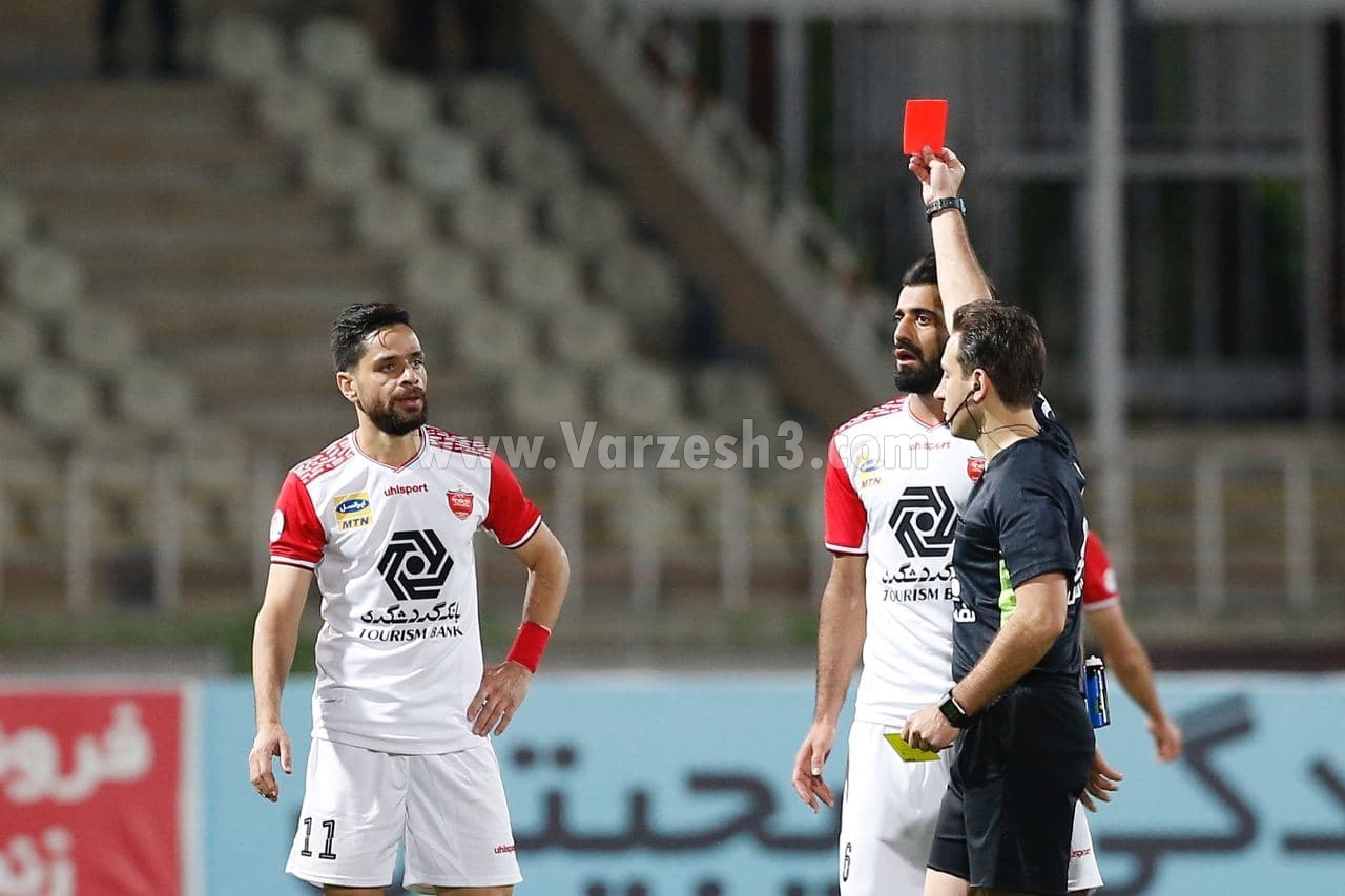* حمید مطهری، مربی پرسپولیس بخاطر اعتراض به داوری در دقیقه 80 کارت زرد گرفت.