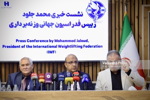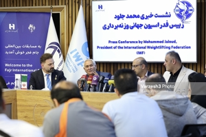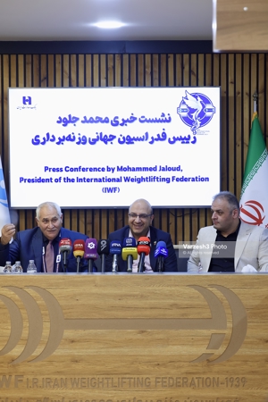نشست خبری محمد جلود، رئیس فدراسیون جهانی وزنهبرداری، امروز در خلال ششمین دوره مسابقات جام فجر و در سالن کنفرانس فدراسیون وزنهبرداری برگزار شد؛ نشستی که با حضور سجاد انوشیروانی، حسین رضازاده، علینژاد و جمعی از خبرنگاران انجام گرفت.