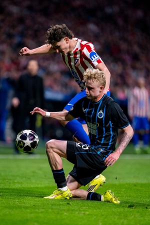 در دور برگشت بازیهای پلی آف لیگ قهرمانان اروپا، اتلتیکو مادرید موفق شد با نتیجه قاطع 4 بر 1 مقابل کلوب بروژ به برتری برسد و جواز حضور در مرحله یک هشتم نهایی این مسابقات را به دست آورد.