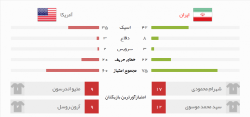 به گزارش "ورزش سه"، بعد از اتمام پیروزی 3 بر صفر تیم ملی والیبال ایران در دومین بازی خود مقابل آمریکا تمام بازیکنان در حد یک ستاره بودند و در بین تمام این بازیکنان شهرام محمودی با کسب 17 امتیاز سهم بیشتری در موفقیت حمله ای ایران داشت. بعد از او سید محمد موسوی با کسب 12 امتیازدر رده دوم قرار داشت.