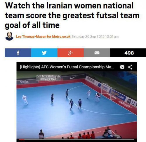 به گزارش "ورزش سه"، گل مذکور در بازی تیم فوتسال دختران ایران مقابل مالزی به ثمر رسیده است. بازیکنان ایران با پرس توپ را در نیمه خودی در اختیار می‌ گیرند و با 4 پاس سریع توپ را به فهیمه زارعی می‌ رسانند و او با ضربه ای زیبا با پشت پا توپ را وارد دروازه حریف می‌ کند. این گلی است که از محل رقابت های قهرمانی فوتسال دختران آسیا در کوالالامپور به سرعت بین رسانه های مجازی و اجتماعی دست به دست شد و سرانجام تبدیل به تیتر اول نشریات مهم دنیا مثل مترو شد.