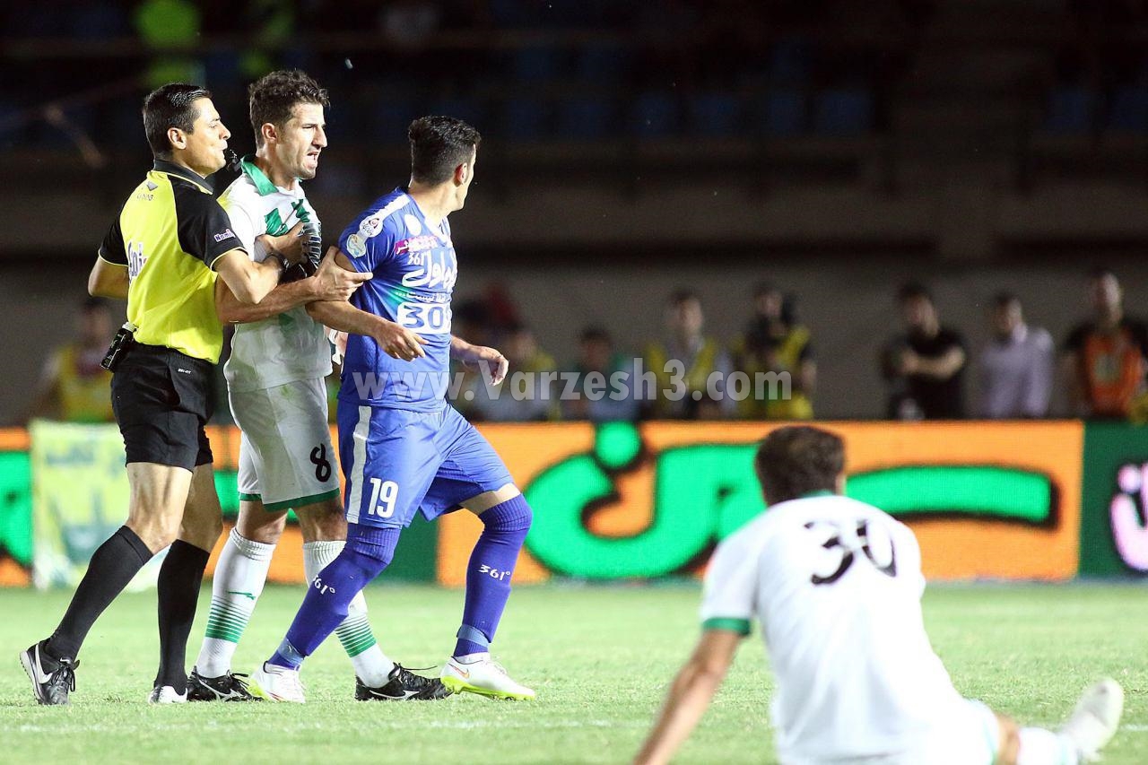 اما بلافاصله پس از افتادن رمضانی روی زمین ولید اسماعیل لگد محکمی به پهلوی این بازیکن استقلال زد و او نیز در برگشت بیتجربگی کرد و مدافع لبنانی را هُل داد ولی به طور قطع حرکت ناشایت ولید اسماعیل باید با کارت قرمز همراه میشد ولی پس از درگیری فیزیکی بازیکنان دو تیم علیرضا فغانی به دادن اخطار به هر دو بازیکن بسنده کرد تا ذوبآهن در 3 دقیقه پایانی 10 نفره نشود.