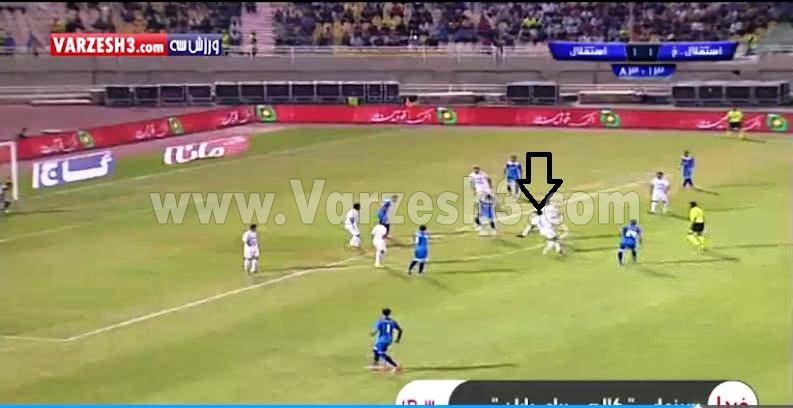 ضربه سر ناشیانه کنعانی زادگان به پشت محوطه جریمه در حالی که فرشید باقری و امید ابراهیمی در این منطقه از زمین حضور ندارند، باعث می شود تا هافبک استقلال خوزستان در یک موقعیت مناسب شوت زنی قرار بگیرد. در این صحنه در کنار اشتباه بچه گانه کنعانی زادگان، عدم پوشش مناسب ابراهیمی و باقری که در صحنه گل دوم استقلال خوزستان نیز تکرار می شود، نکته ای قابل توجه است.