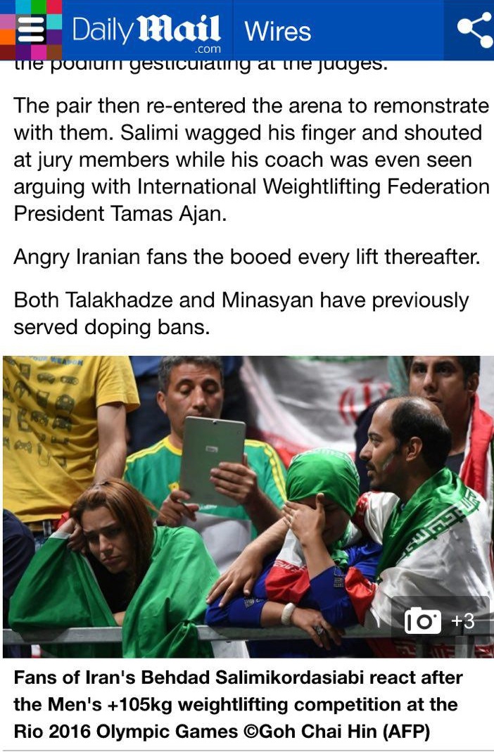 به گزارش "ورزش سه"، بسیاری از سایت های معتبر جهان مثل گاردین، یاهو، دیلی میل و واول با قرار دادن عکس هایی از بهداد سلیمی، در مورد مسابقات دسته سنگین وزن رشته وزنه برداری المپیک مطالبی را منعکس کردند و با نشان دادن عکس هایی از تماشاگران و خود بهداد، به حذف نا عادلانه قهرمان المپیک لندن اشاره کردند.