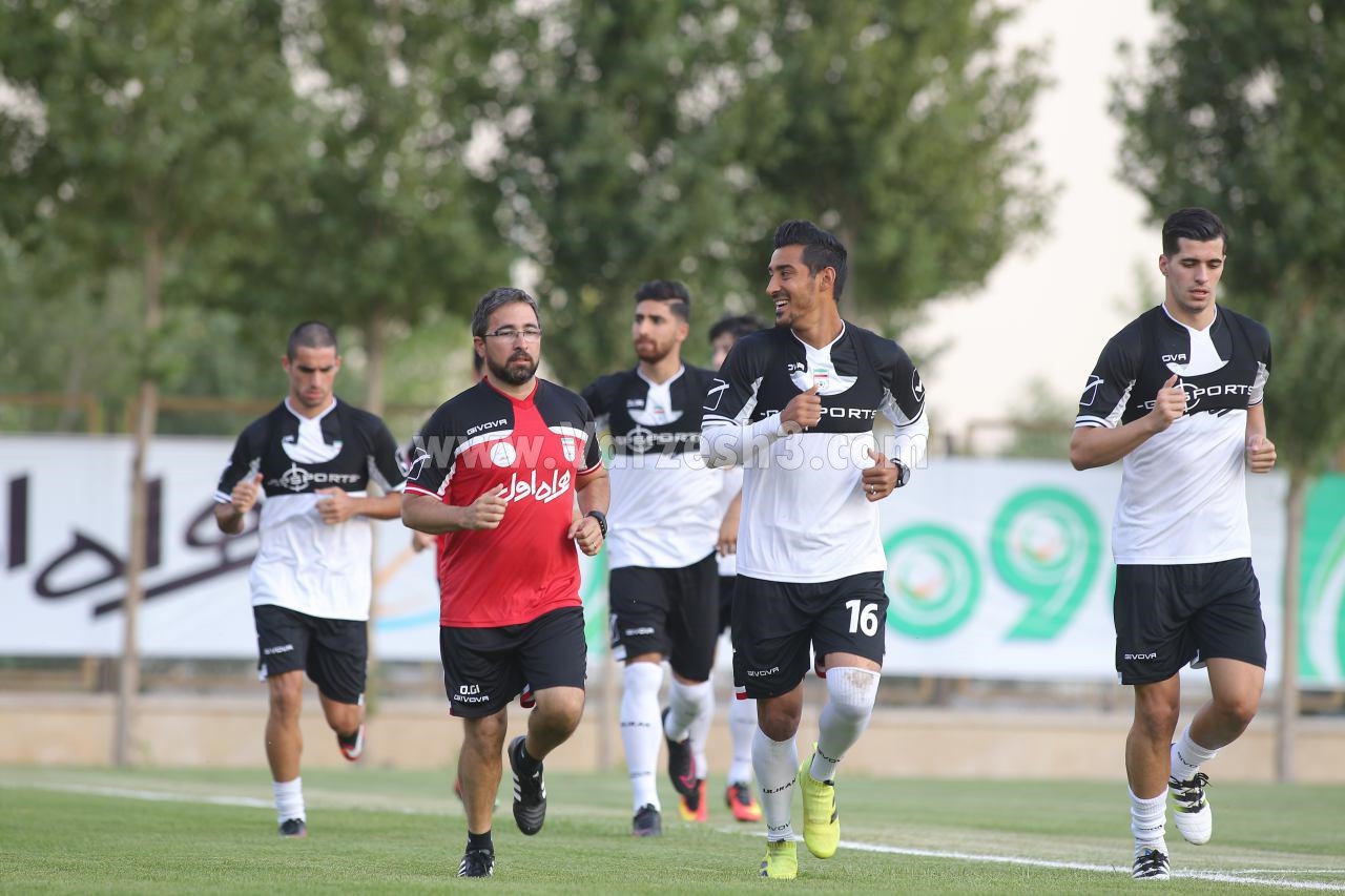 *در ابتدای تمرین ملی پوشان در گروه های چندنفره به گرم کردن خود پرداختند،