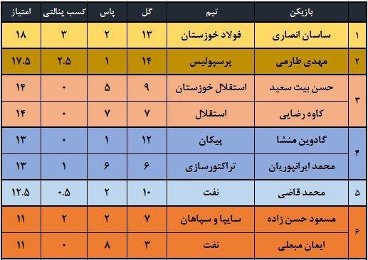 اول – ساسان انصاری، فولاد خوزستان – 18 امتیاز