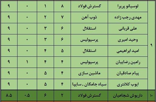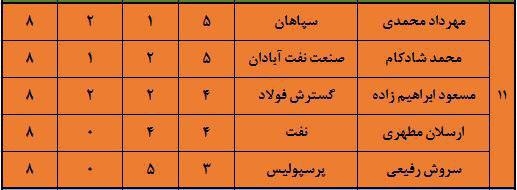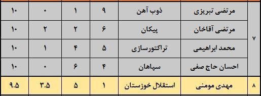 ششم – مسعود حسن زاده، سپاهان – 11 امتیاز