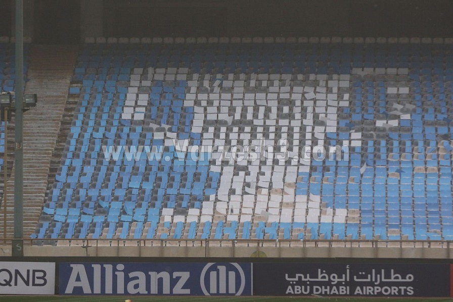 به گزارش "ورزش سه"، هواداران استقلال قصد داشتند در بازی فردا برابر الاهلی از طرح موزاییکی جدید خود رونمایی کنند و به این شکل برای پرسپولیسی ها کری بخوانند اما طوفان شدید باعث شد بخشی از این طرح از روی سکوها کنده شود و بعید است فردا آبی ها بتوانند از طرح موزاییکی خود رونمایی کنند.