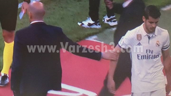 موراتا شب گذشته از ابتدا برابر سویا به میدان رفت و دقیقه 61 جای خود را به لوکاس داد. دوربین های شبکه دپورته کواترو، لحظه خروج موراتای عصبانی را به تصویر کشیده اند که در آنها مشخص است که این مهاجم جوان حاضر نشده با زیدان دست بدهد و زیر لب نیز چند دشنام نثار سرمربی خود کرده است.