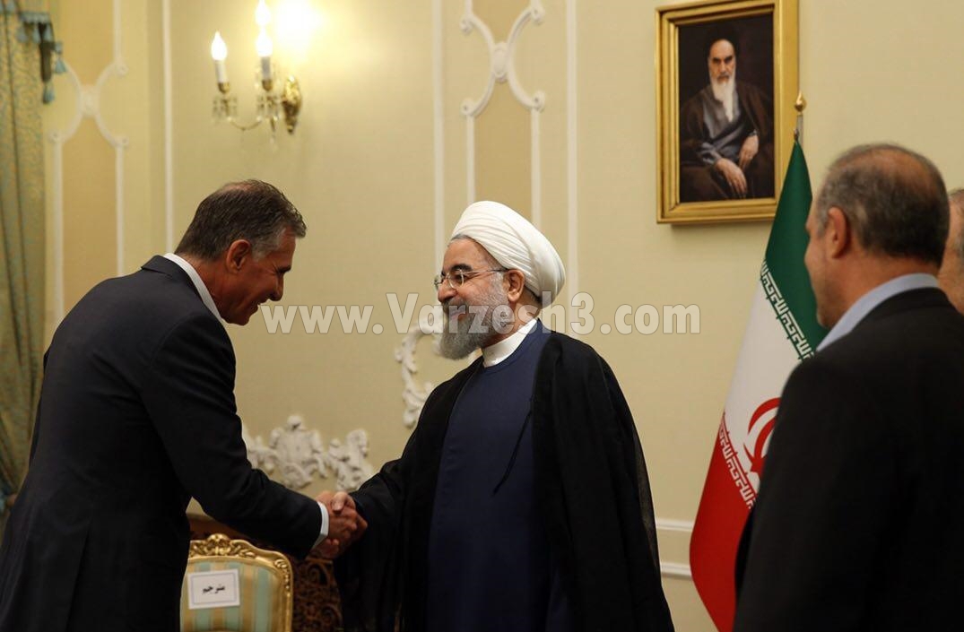کیروش و مسعود شجاعی به نمایندگی از ملی پوشان در این دیدار پیراهن شماره 17 با امضا همه ملی پوشان را به حسن روحانی رییس جمهور منتخب هدیه دادند.جالب این که کارلوس کی روش به طور مستقیم مورد تفقد حسن روحانی قرار گرفت ورییس جمهوری درباره وی گفت : همکاری مربی خارجی با بازیکنان ایرانی یکی از مظاهر کوچک تعامل با دنیا است و نشان میدهد که زمانی که با نخبگان دنیا به درستی تعامل کنیم میتوانیم افتخارات بیشتری بیافرینیم.