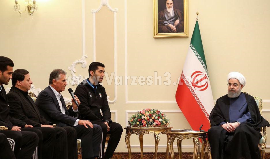 به گزارش "ورزشسه"، سرمربی تیم ملی ایران در لحظاتی که میکروفون را در دست گرفته بود تا از روحانی بابت این دعوت تشکر کند، از وی خواست با توجه بیشتر در همه امور به حمایت از تیم ملی بپردازند.
