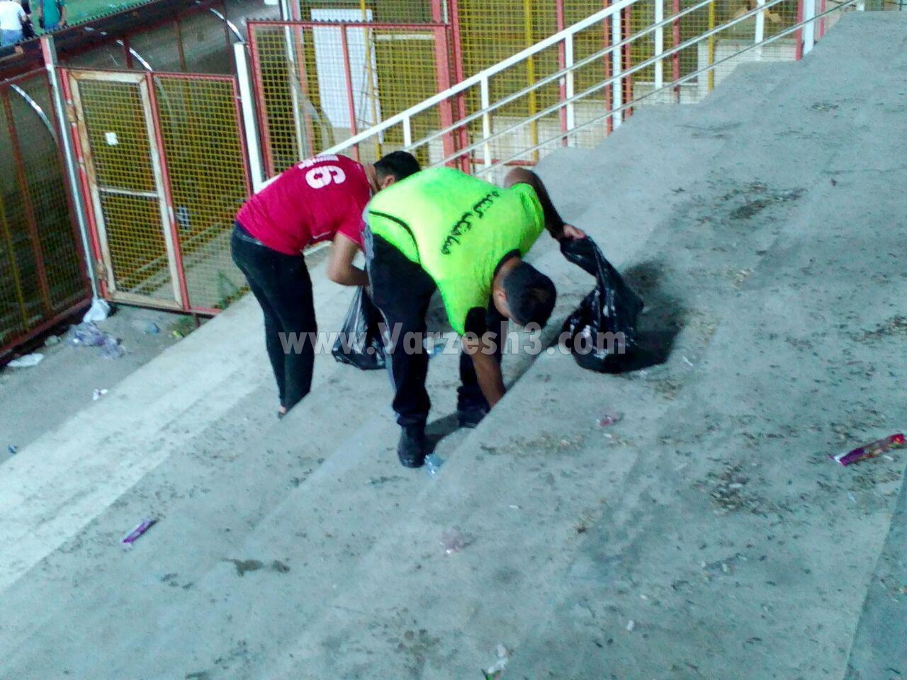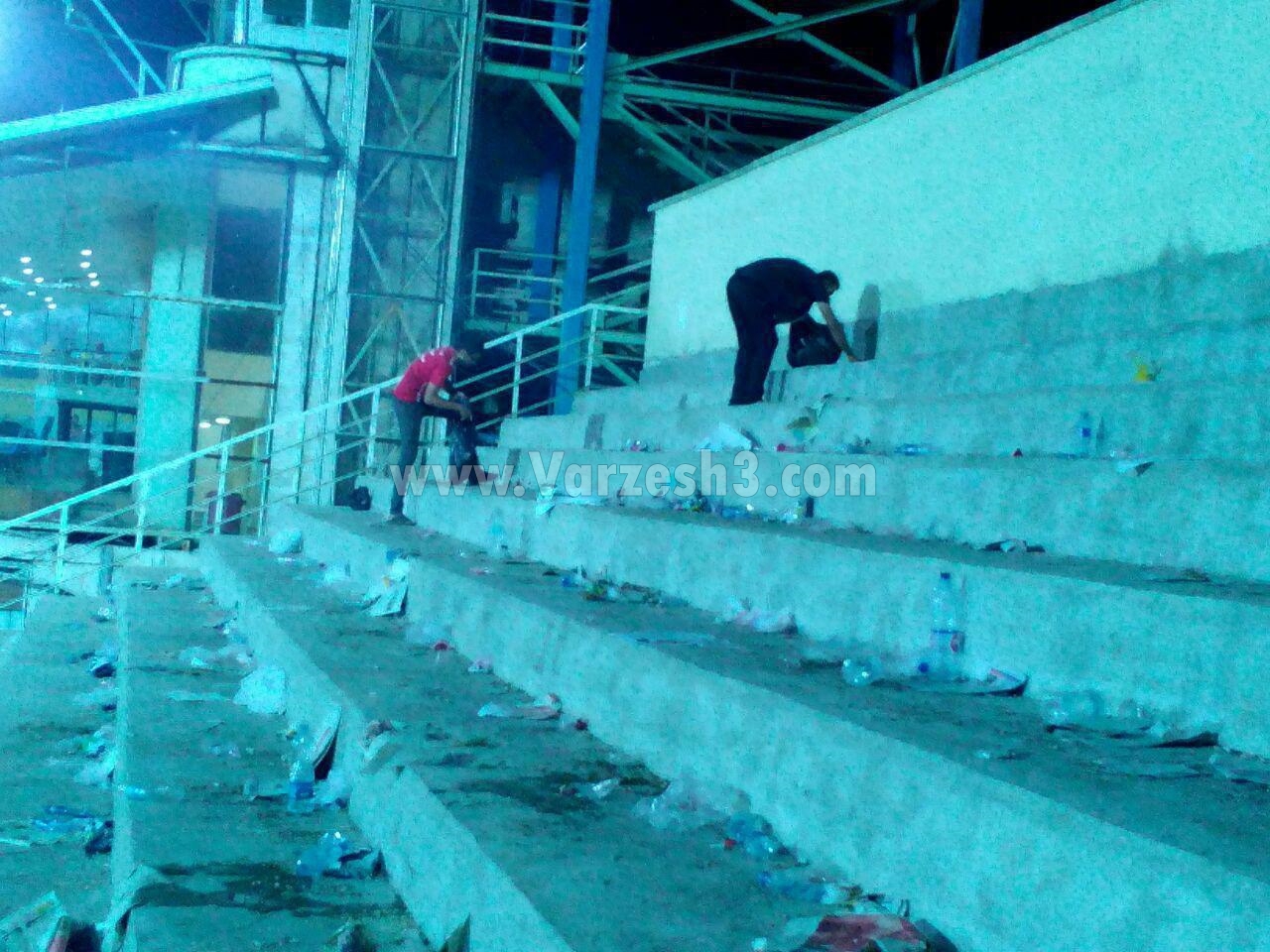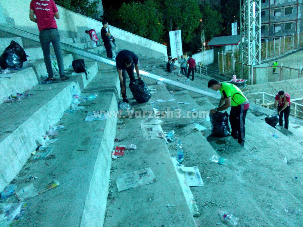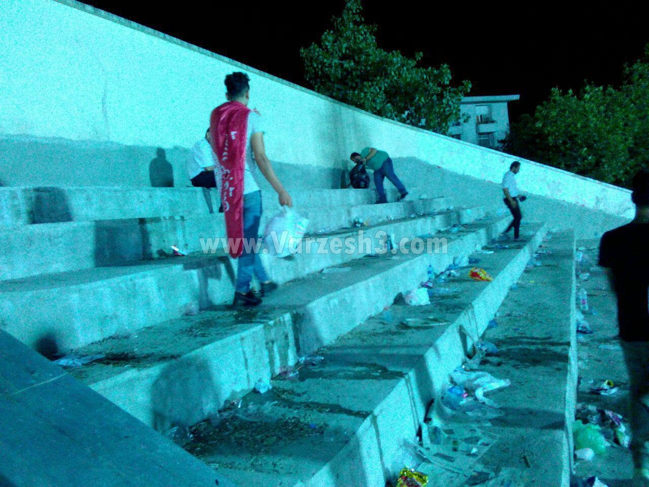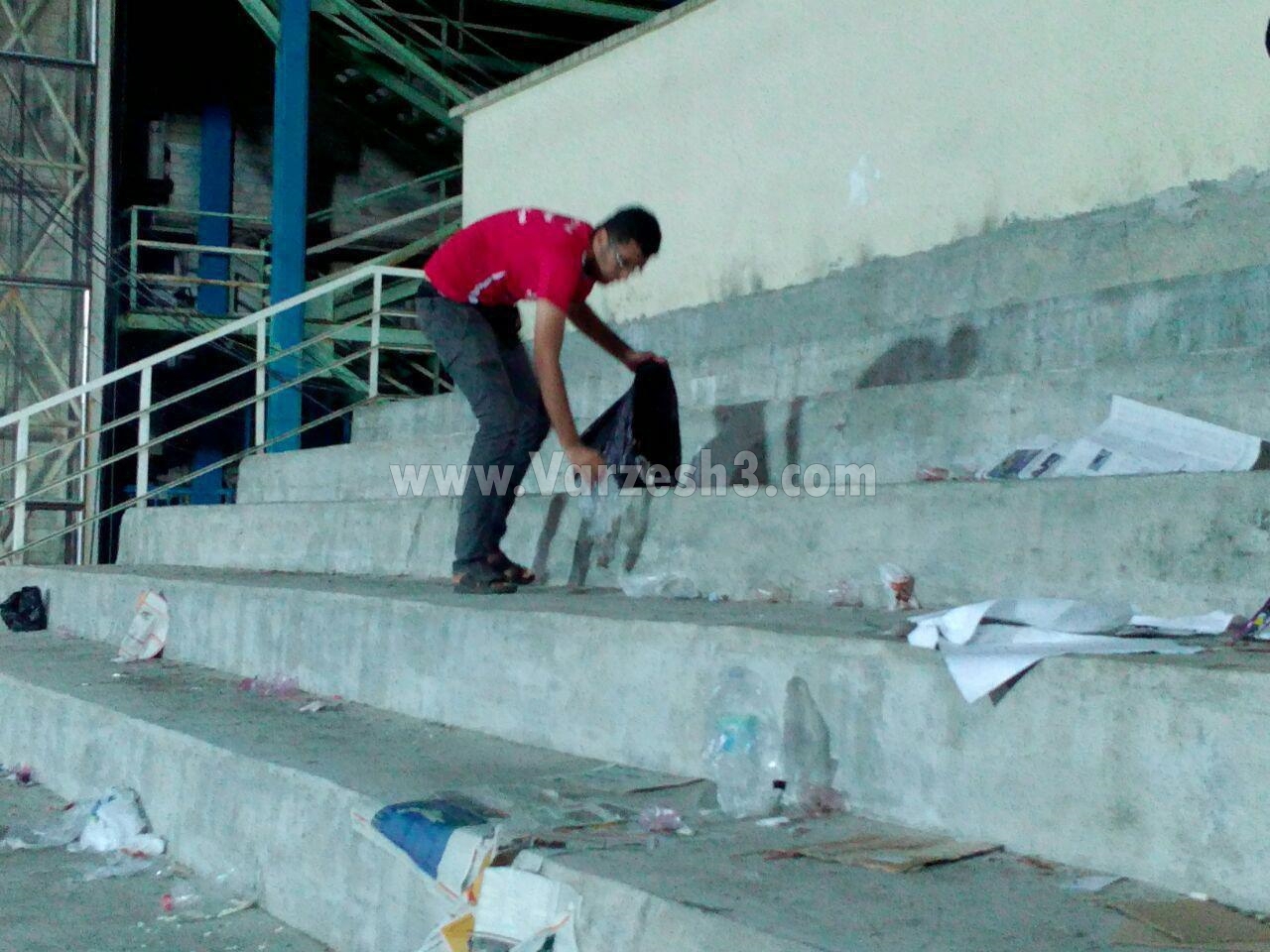 آنها هفته گذشته نیز پس از قشون کشی دو هزار نفره شان به ورزشگاه تختی ماندند و سر و گوشی به نظافت ورزشگاه میزبانشان کشیدند و بعد به خانه بازگشتند.