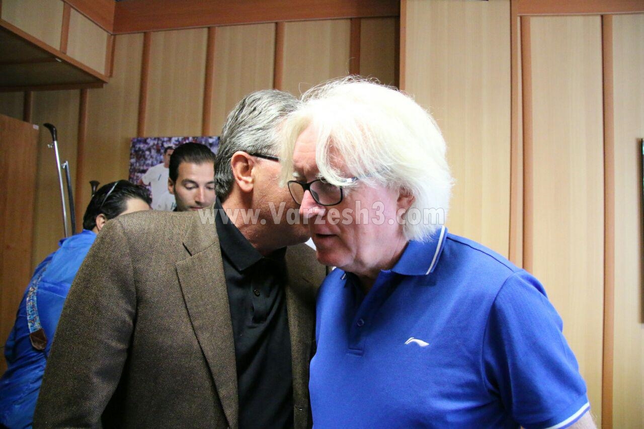 15:47- مهدی رحمتی در زمان ورود به زمین از راه دور با کریم باقری خوش و بش کرد و برای او بوسه فرستاد که با پاسخ عضو کادرفنی پرسپولیس همراه بود.