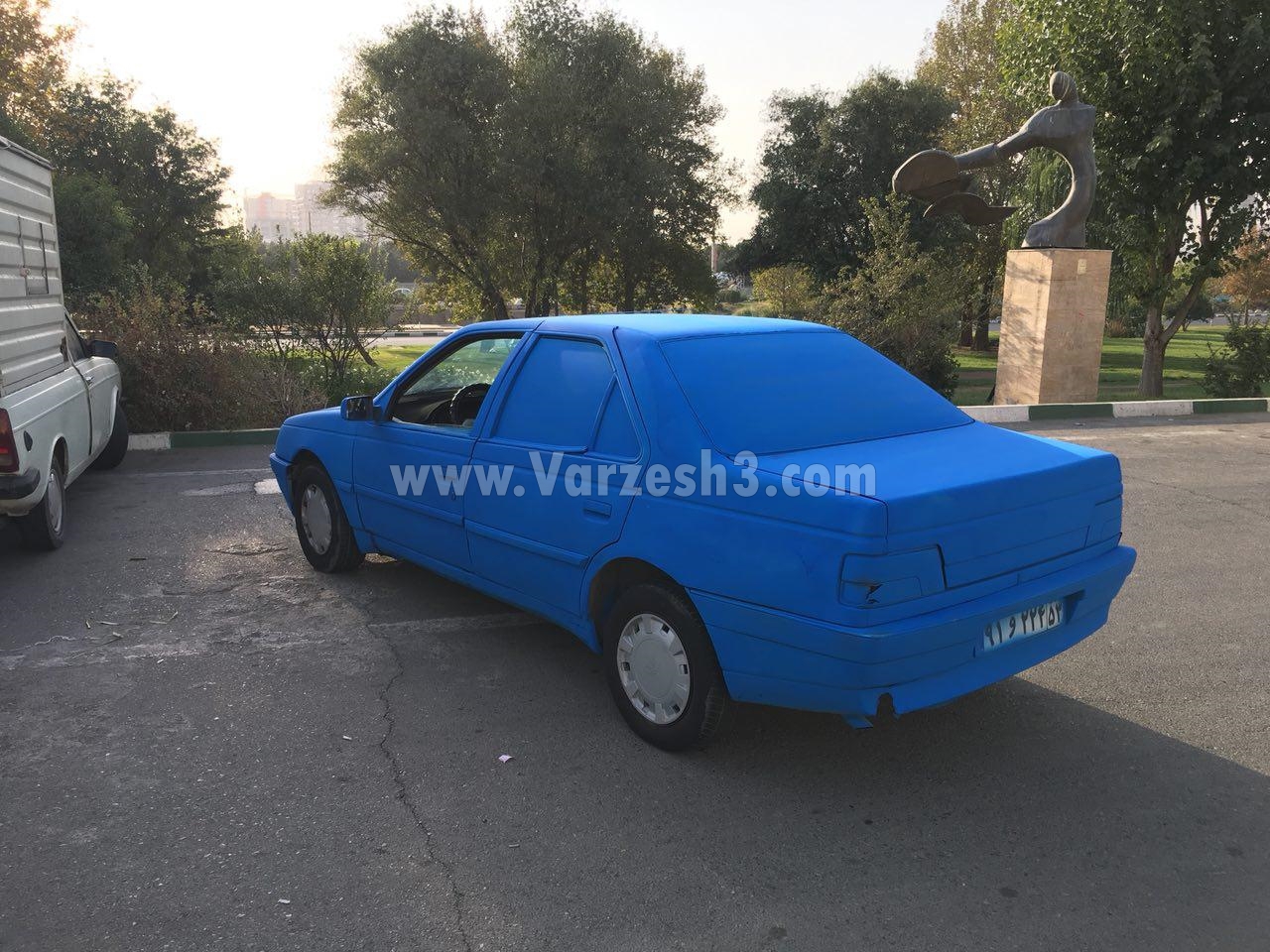 16:15: یکی از هواداران متعصب استقلال خودروی خود را به زنگ آبی درآورده است و در فاصلله 24 ساعت مانده تا دربی جلوی در استادیوم آزادی حضور دارد.