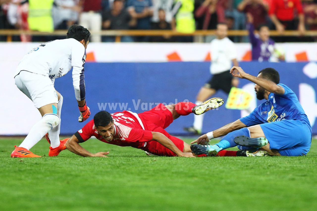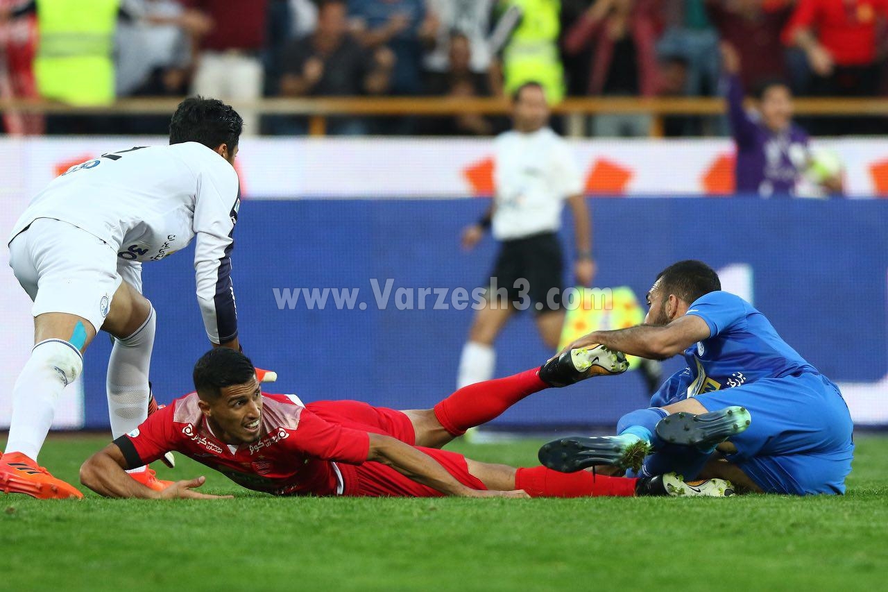 بعد از این صحنه شجاع خلیل زاده به صورت داریوش شجاعیان ضربه زد؛ اما صحنه از دید داور پنهان ماند و مدافع پرسپولیس هم از کارت زرد در امان ماند.