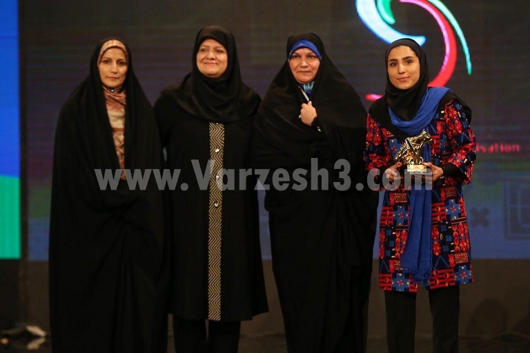 * زهرا قنبری از شهرداری بم که با 41 گل زده خانم گل فصل اخیر لیگ برتر فوتبال بانوان ایران شده بود، جایزه و تندیس خود را دریافت کرد.