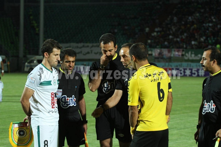 چند دقیقه بعد هم نوبت به رشید مظاهری رسید که به عدم اعلام خطای بازیکنان سپاهان معترض بود و امید نمازی هم در ادامه و روی صحنه خطایی که در نزدیکی او رخ داد به شدت به کاظمی انتقاد داشت.