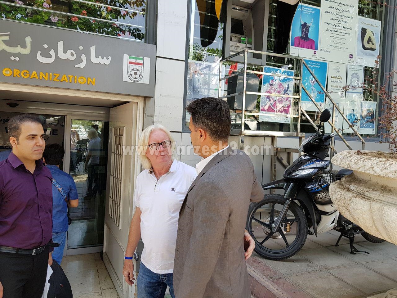 سرمربیان تیم های استقلال و فولاد مقابل ساختمان سازمان لیگ با هم دیدار کردند.