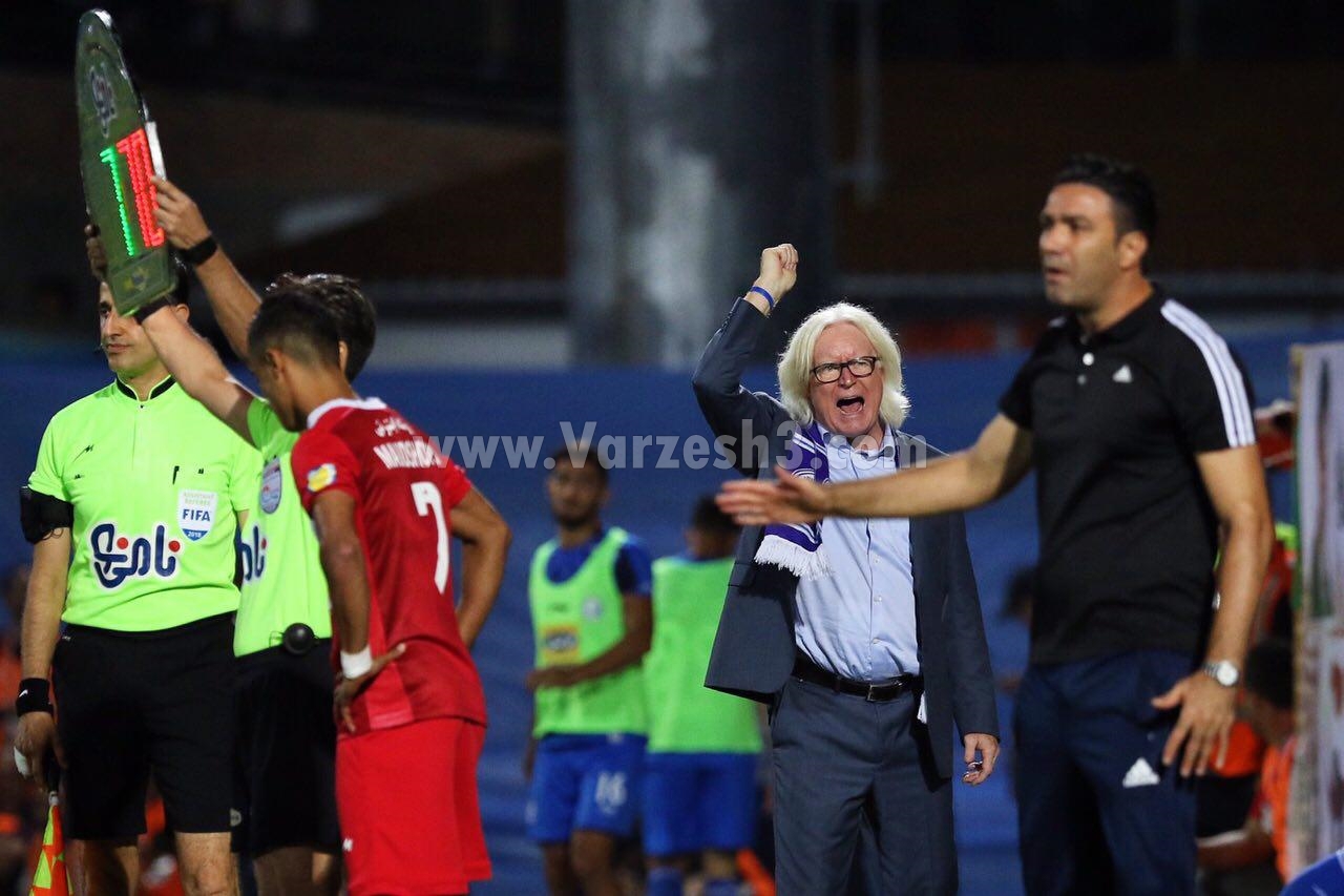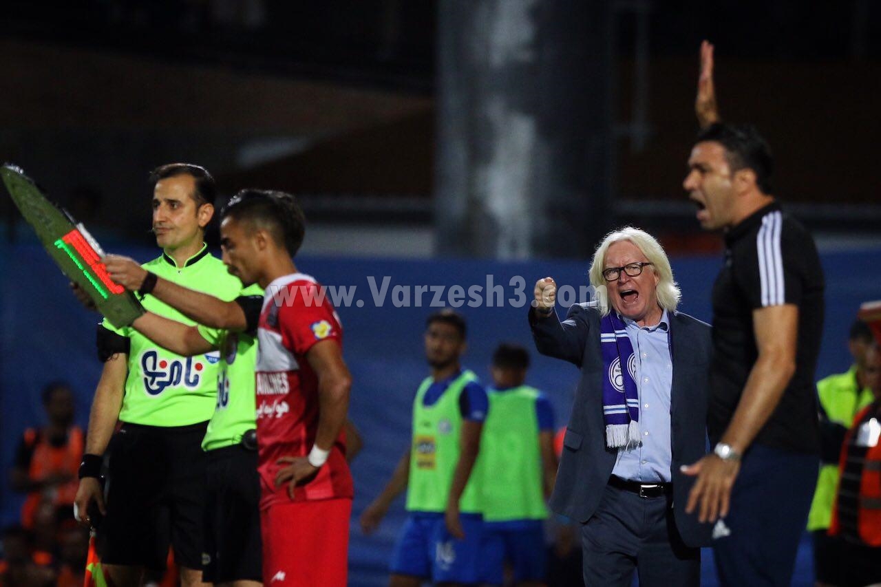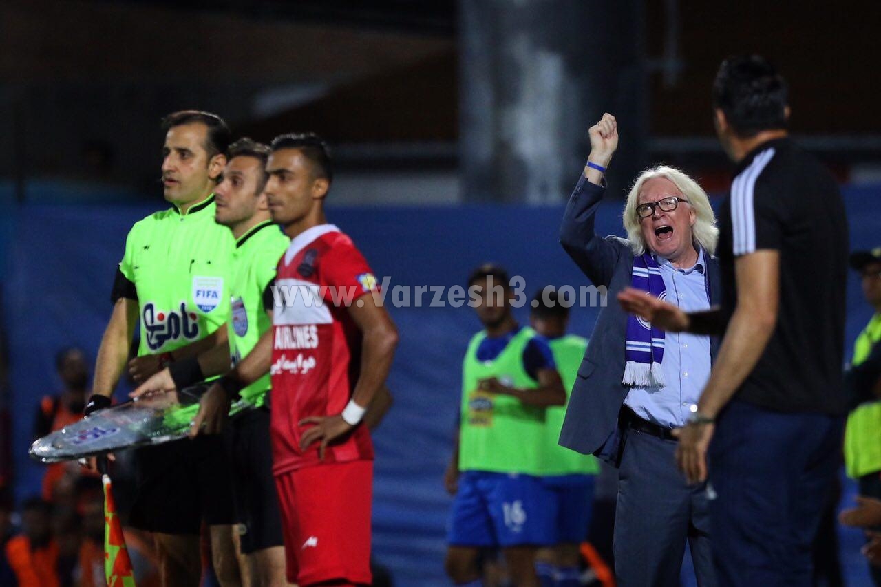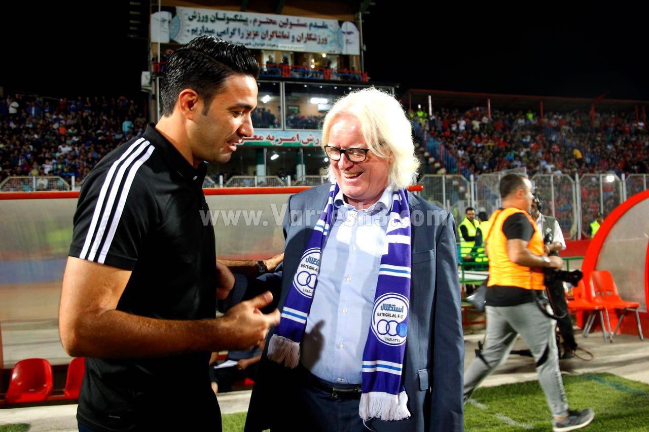 نکونام به رسم مهماننوازی و میزبانی در استادیوم شهید وطنی قائمشهر قبل از شروع مسابقه با استقلال به سمت وینفرد شفر رفت و برخورد گرمی با سرمربی ۶۸ ساله آبیها داشت ولی تقابل و مجادلههای آنها بلافاصله بعد از به صدا در آمدن سوت آغاز مسابقه، شروع شد و سرمربیان دو تیم حتی بیشتر از بازیکنان داخل زمین، در کنار خط طولی جنب و جوش داشتند.