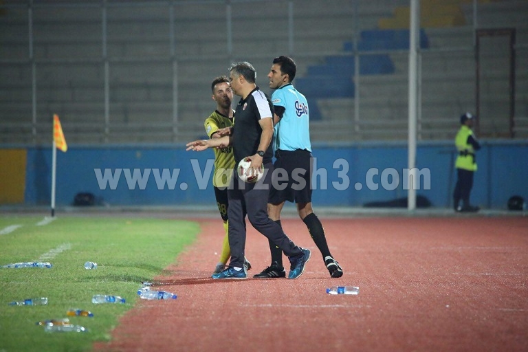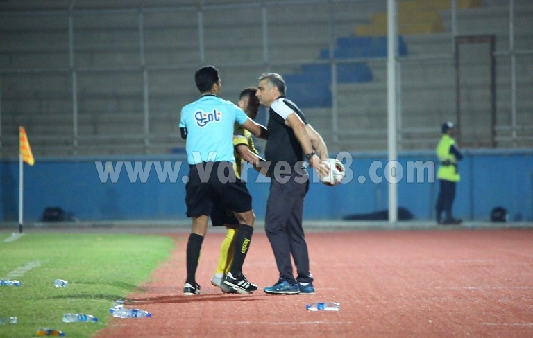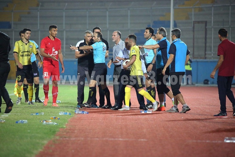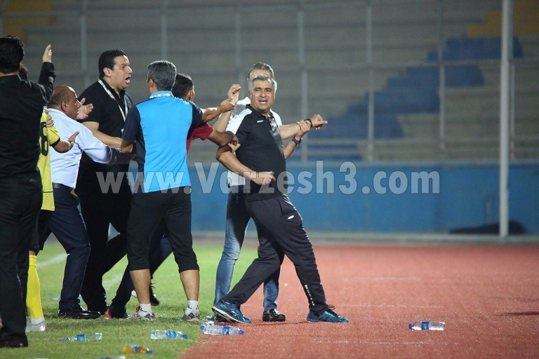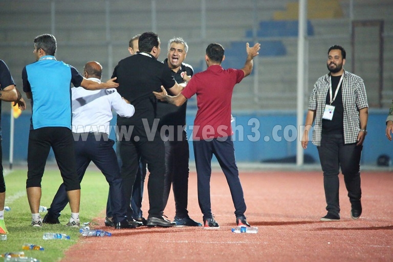 الهامی هنگام خروج از زمین مسابقه با عصبانیت صحبت هایی را انجام داد و بعد از چند دقیقه کش و قوس سرانجام به روی سکوها رفت.