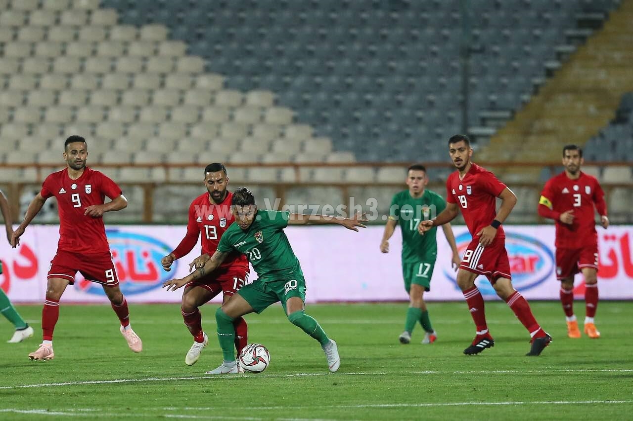 دققه 2: ارسال دقیق سامان قدوس از روی ضربه آزاد میانه زمین و ضربه سر مهدی طارمی با کمترین فاصله از روی دروازه بولیوی به بیرون رفت.