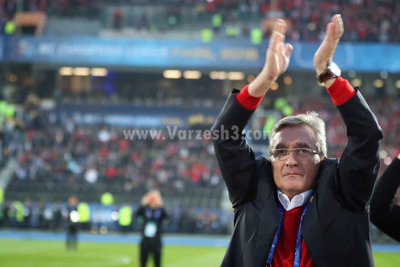 به گزارش "ورزش سه"، سرمربی تیم پرسپولیس برای بازی فینال پلیوری همرنگ پیراهن بازیکنان و لباس هواداران پوشیده تا با پوششی یکسان با تمام اعضای پرسپولیسی ورزشگاه به استقبال بازی فینال برود. او پیش تر در بازی پرسپولیس - استقلال لیگ پانزدهم نیز همین لباس را برتن داشت و شاگردانش موفق شدند با نتیجه 4-2 برنده دربی باشند.