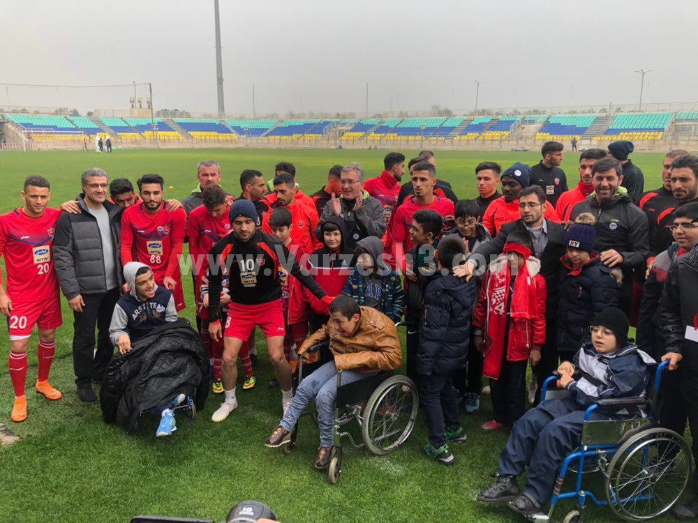بازیکنان پرسپولیس که از حضور میهمانان ویژه خوشحال به نظر می رسیدند، عکس هایی به یادگار با آن ها انداختند.