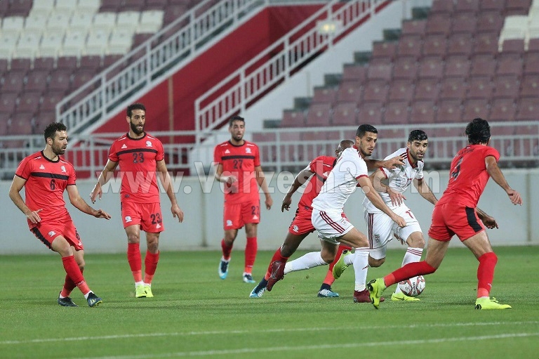 ایران که بیشتر روی نفوذ از سمت راست زمین برنامه داشت، در دقیقه 50 روی ارسال دژاگه و ضربه تمام کننده مهدی طارمی به گل رسید ولی پس از این گل حملات شاگردان کیروش فروکش کرد و آنها بیشتر در میانه و عقب زمین توپ را در گردش درآوردند؛ در سمت مقابل فلسطین که نمایش فراتر از تصوری داشت، از حملات معدود، اما خطرناکاش بالاخره نتیجه گرفت و موفق شد در ثانیههای پایانی با گلزنی جاناتان زوریلا، بازیکن تعویضی خود به تساوی ارزشمندی برسد.