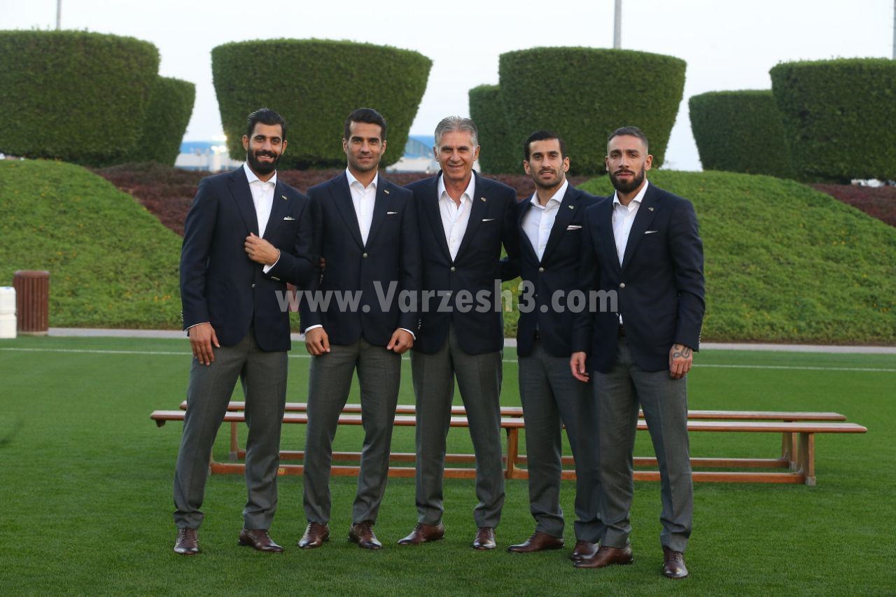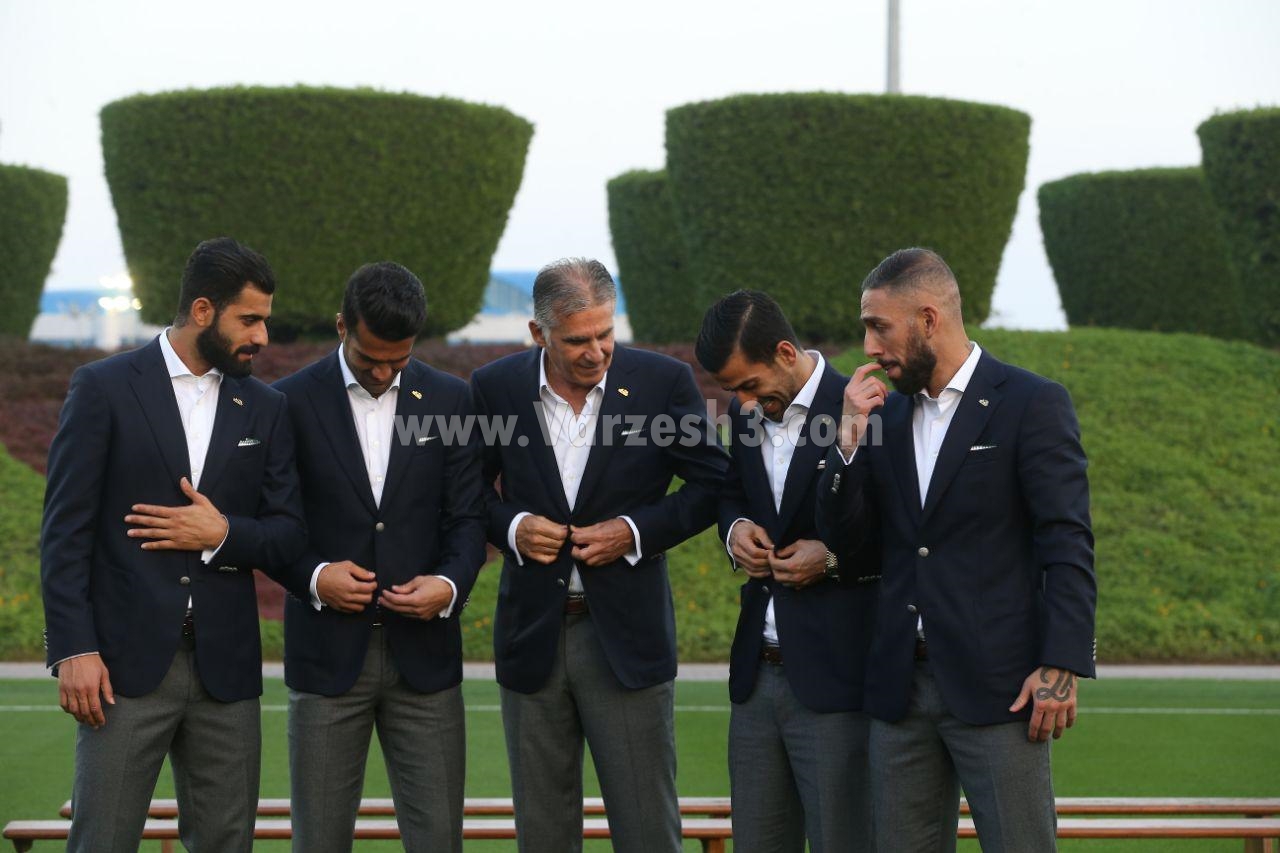سرمربی تیم ملی قبل از ثبت این تصویر، به این 4 بازیکن نحوه استقرار در تصویر و بستن دکمه لباس را آموزش داد تا بازیکنان تیم ملی نیز مانند او شیک پوش و منظم باشند.