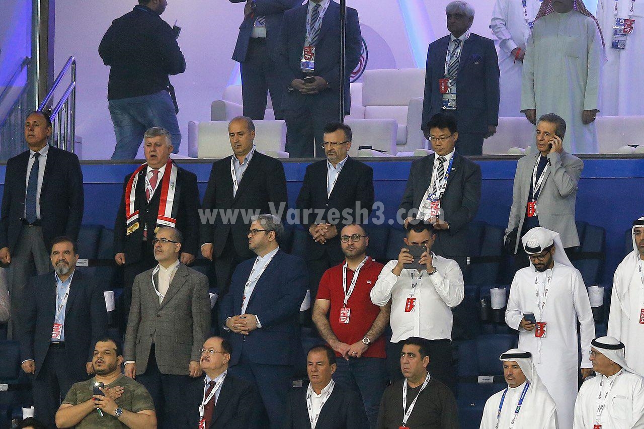 * مهدی تاج، رئیس فدراسیون فوتبال و محمدرضا داورزنی، معاون وزیر ورزش و جوانان در استادیوم آل مکتوم حضور دارند.